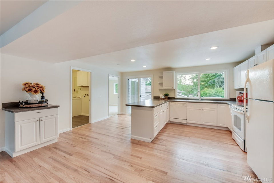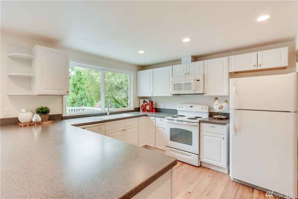 This Totem Lake gem shines like new inside & out. Fully updated from top to bottom with dazzling finishes & designer colors throughout. Recent updates include: New kit cabinets w/quartz tops/Refinished hrd wd flrs/New carpet & new paint inside & out. Over 2700 S/F includes 4 bdrms, 2.25 baths, family rm + huge bonus. Newer Roof/Furnace & H2O. Fenced back yard w/new sod is perfect for pets & play. Close to 405, shopping, Evergreen Hospital, park-n-ride & Totem Lake Mall. Excellent Lake WA Schls.