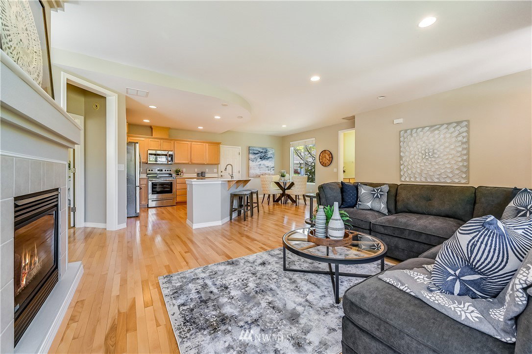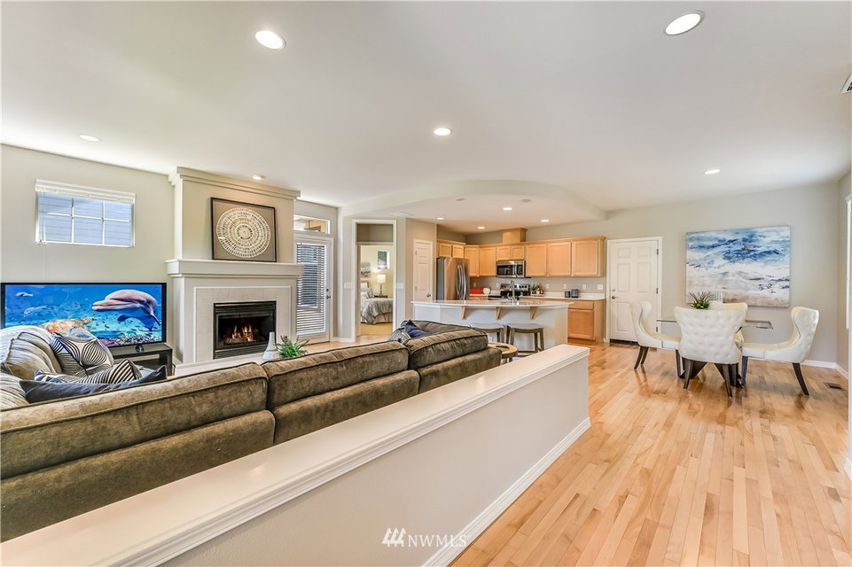 Picture perfect Townsend model sited on a sunny level lot in the Sunbreak neighborhood of Trilogy. Tastefully updated w/designer colors & finishes this home shines like new. Island kitchen w/new quartz counters, sink, faucet and all new appliances. Spacious great room w/gorgeous hrdwds & gas fireplace opens to outdoor dining & BBQ patio. Owner’s suite w/dual closets & private bath. Freshly painted int/Newer carpet in bdrms/2 car gar. HOA dues cover Cascade Club membership & front yard maint. 53+