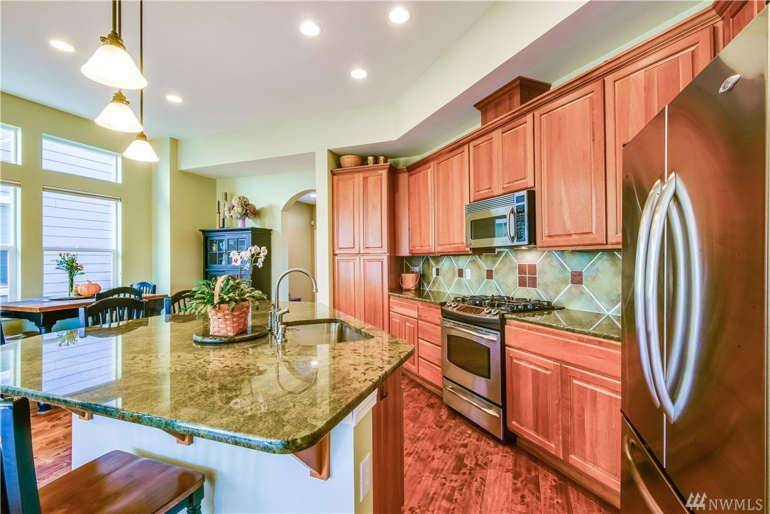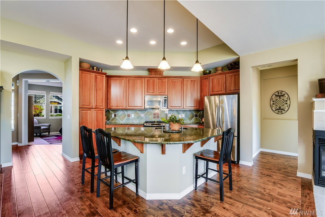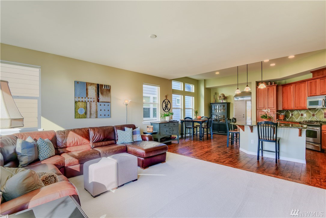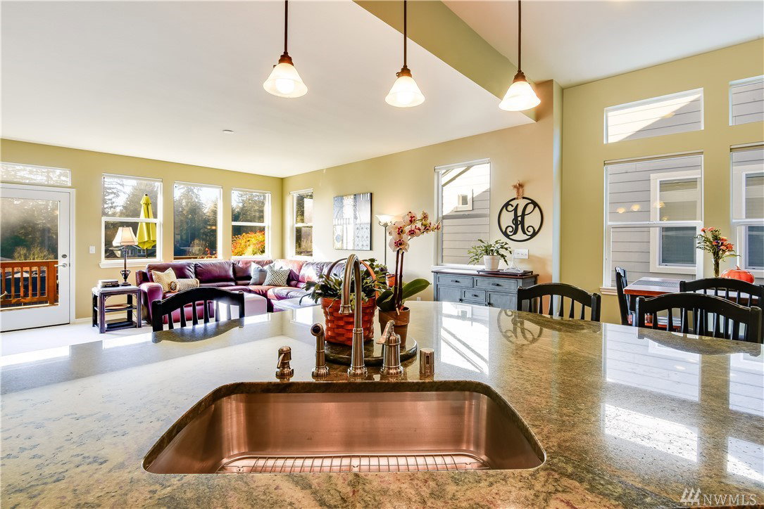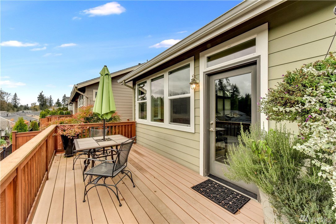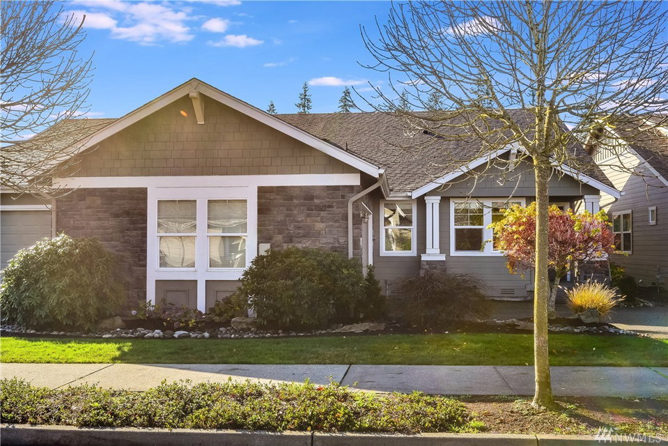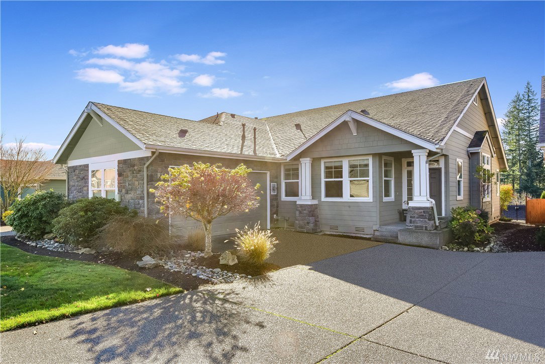 Get ready to live resort style in the premier 55+ community of Trilogy. This pristine Sammamish model home was a second home & lightly lived in. Newer hardwood floors, exquisite slab granite counters, plush carpeting and heated master bath floors. Great room floor plan with nice separation between the bedrooms and a full sized office. West facing, sunny and bright inside with expansive territorial views. Relax outdoors on the extended deck or the lower patio area. Garage with built-in cabinets.