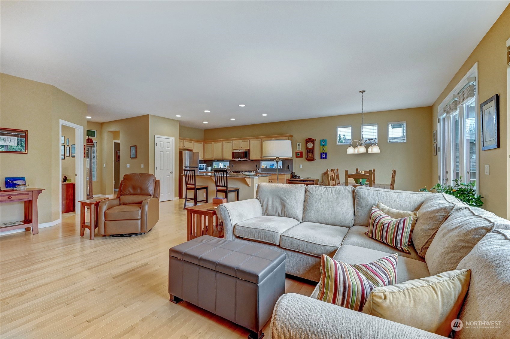 Get ready to enjoy resort style living in the premier 55+ community of Trilogy at Redmond Ridge. This meticulously maintained Vashon plan is sited on a quiet tree lined street and features an open design floor plan. The covered entry welcomes your guests to this warm and inviting home layered in designer tones and premium finishes. Hardwood floors flow throughout the great room and large picture windows frame the big westerly views. Island kitchen features beautiful quartz counters and stainless appliances. Primary bedroom w/en-suite bath & walk-in closet. 2nd bedroom w/adjacent full bath. Enclosed, private den/office. Expansive, sunny deck, perfect for entertaining & relaxing. 2 car garage/Central AC/All appliances are included. Turn-key!