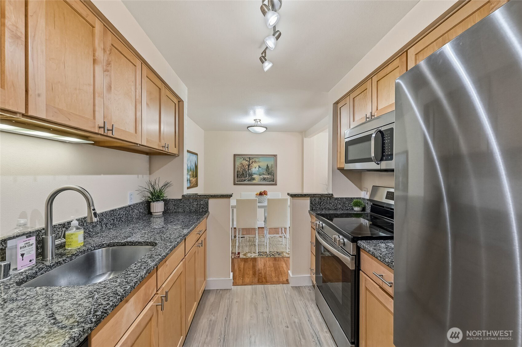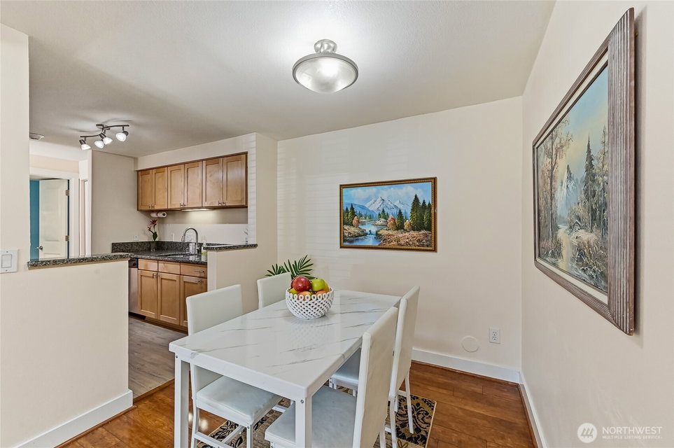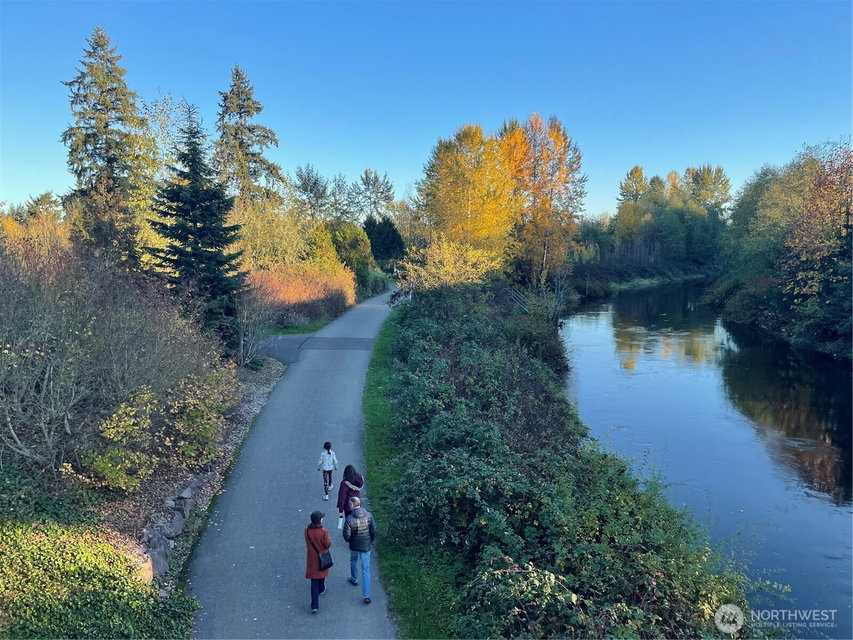 Supremely well-positioned, southwest-facing 2bed, 1.5bath, two-story townhome in the heart of Redmond. Freshly painted throughout. Gorgeous laminate floor on main level features open/sun-drenched living and dining areas, updated kitchen w/ granite countertops and newer stainless appliances – plus a pantry, half bath, entry closet and convenient under-stairs storage. Upper level w/new carpet features two bright bedrooms, fully renovated bathroom, laundry w/ shelving and a hallway closet. Enjoy a spacious patio w/ flower garden. Designated parking in front of the home. The Sammamish River Villas underwent a comprehensive renovation around 2015(roof,siding,windows,drywall,systems). Amenities are EV charging, playground, bike house, ample guest parking and clubhouse with pool/kitchen/expansive entertainment space/a currently being-equipped gym. No rental cap. Pet-friendly. Strong HOA covering water/sewer/garbage. The fenced community backs to a large green field adjacent to the Burke-Gilman Trail. Stroll along the Sammamish River to Marymoor Park or cross a bridge to Redmond Town Center with shops/grocery stores/finest restaurants/movie theater, and vibrant nightlife. Steps to light rail and major bus routes (545/ 542) to Seattle/Bellevue. Minutes’ drive to Microsoft/Amazon/Meta/Google/Nintendo and more. Sought-after Redmond schools. A rare opportunity to own a light-filled, stylish, move-in-ready home in one of Redmond’s most coveted and exceptionally well-connected communities.