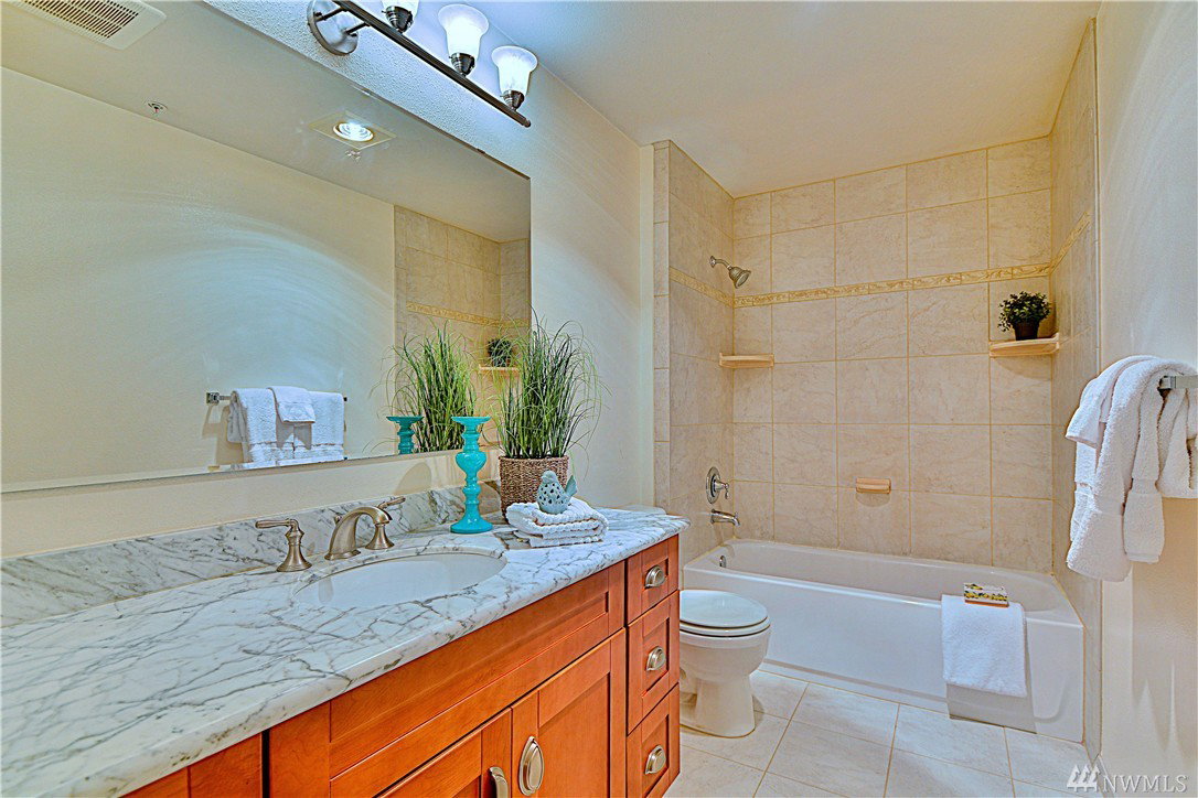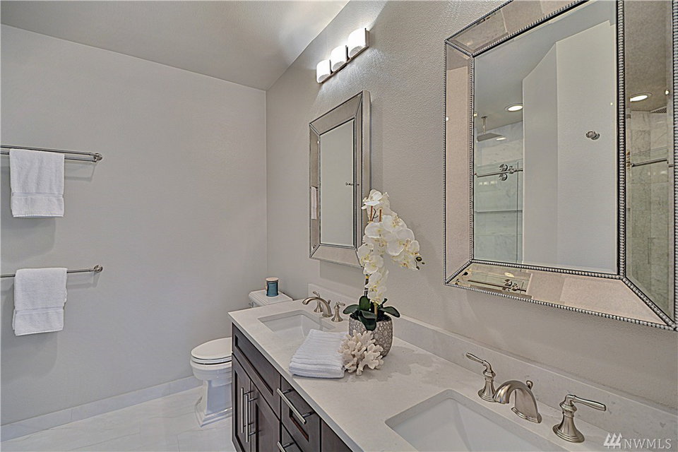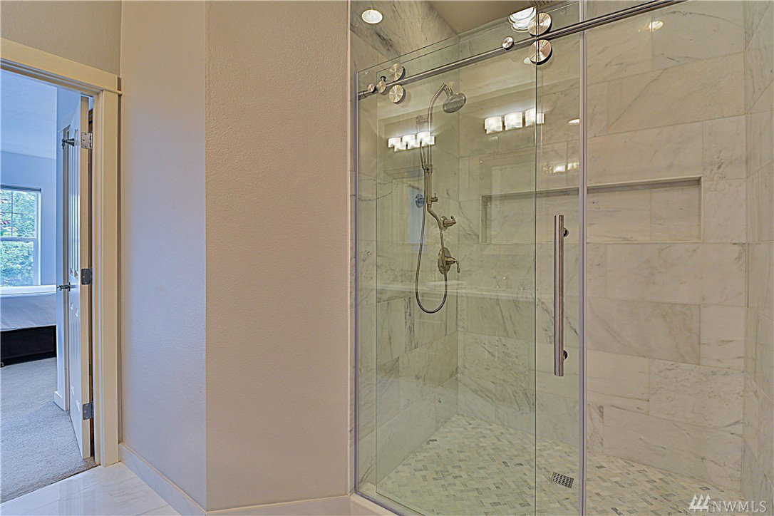 Serene elegance welcomes you into this beautifully updated home w/spacious living areas and spectacular finishes. Slab granite counters and ss apps in the kitchen that opens to dining & living room w/gas fireplace & dramatic 2 story wall of windows. Large master w/a fully renovated bath w/marble thru-out & spa shower w/sliding “barn door”. Versatile upstairs for a second master en-suite or a great bonus room. Noiseless convection heaters & hybrid heat pump water heater. 1 car garage w/storage.