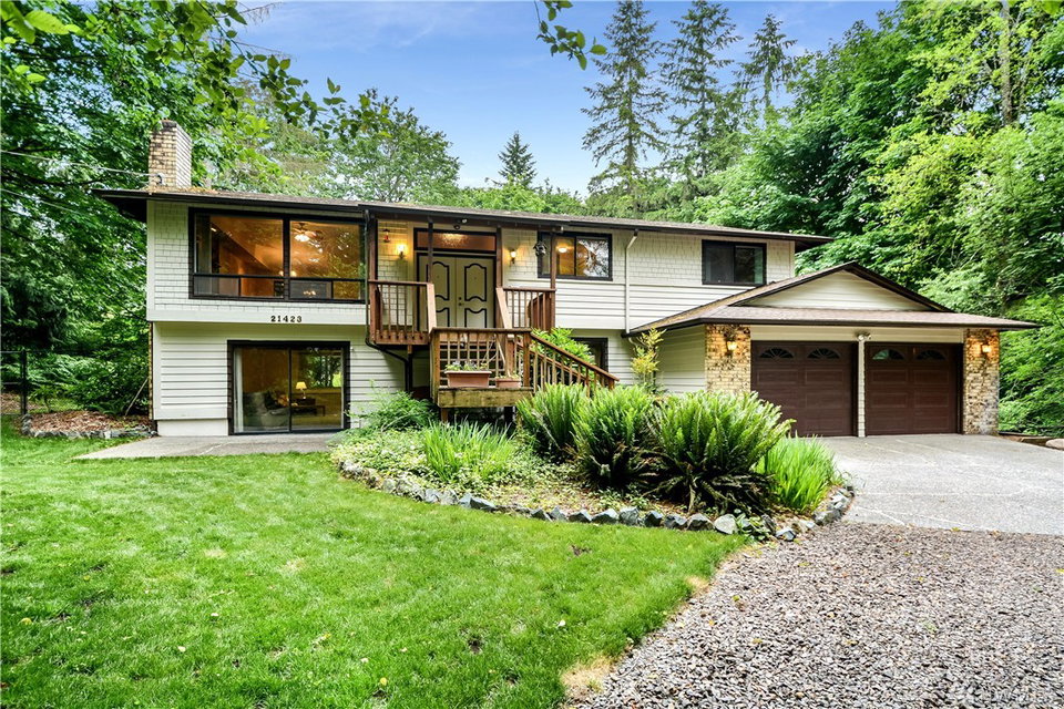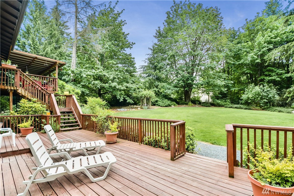 If privacy, a lush green setting and a nice sized home are what you are looking for, this is the one for you! Native trees and plantings combined with a rich green lawn and two tiered deck make are the ideal setting for pets & play or enjoying a quiet cup of coffee in the morning. With 5 bedrooms and large living areas, there is lots of space to spread out in this home and entertain with ease. Huge craft & laundry rooms, too. Easy commute to eastside job centers and terrific Northshore schools.