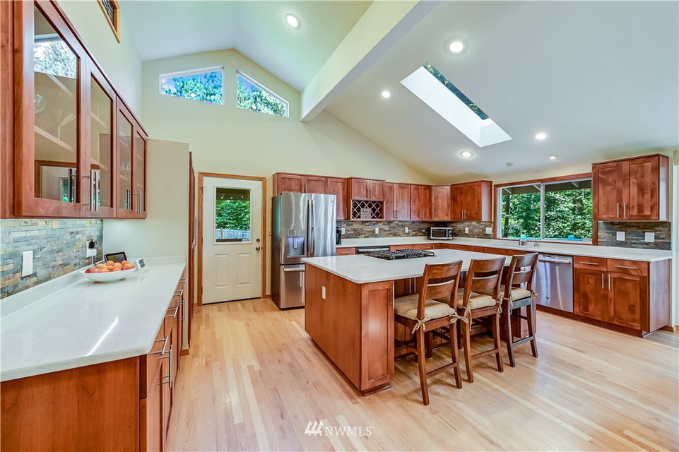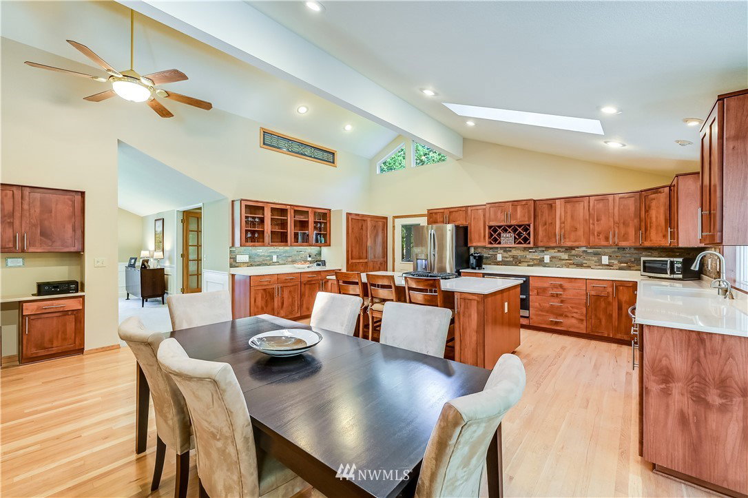 Set on a gorgeous 2.3 acre sunny, level lot is this fantastic 3,068 asf daylight rambler. Easy main floor living with a wide open great room includ. a spectacular, fully remodeled kitchen w/vaulted ceiling, skylights & hrdwds. Formal living, office, all bedrooms &laundry on the main floor. Downstairs is a huge rec room. 720 attached garage and a 6 car + 2 RV 2400 asf detached garage w/in ground vehicle hoist. New furnace 7/20. Full perimeter invisible dog fence. A truly incredible property!
