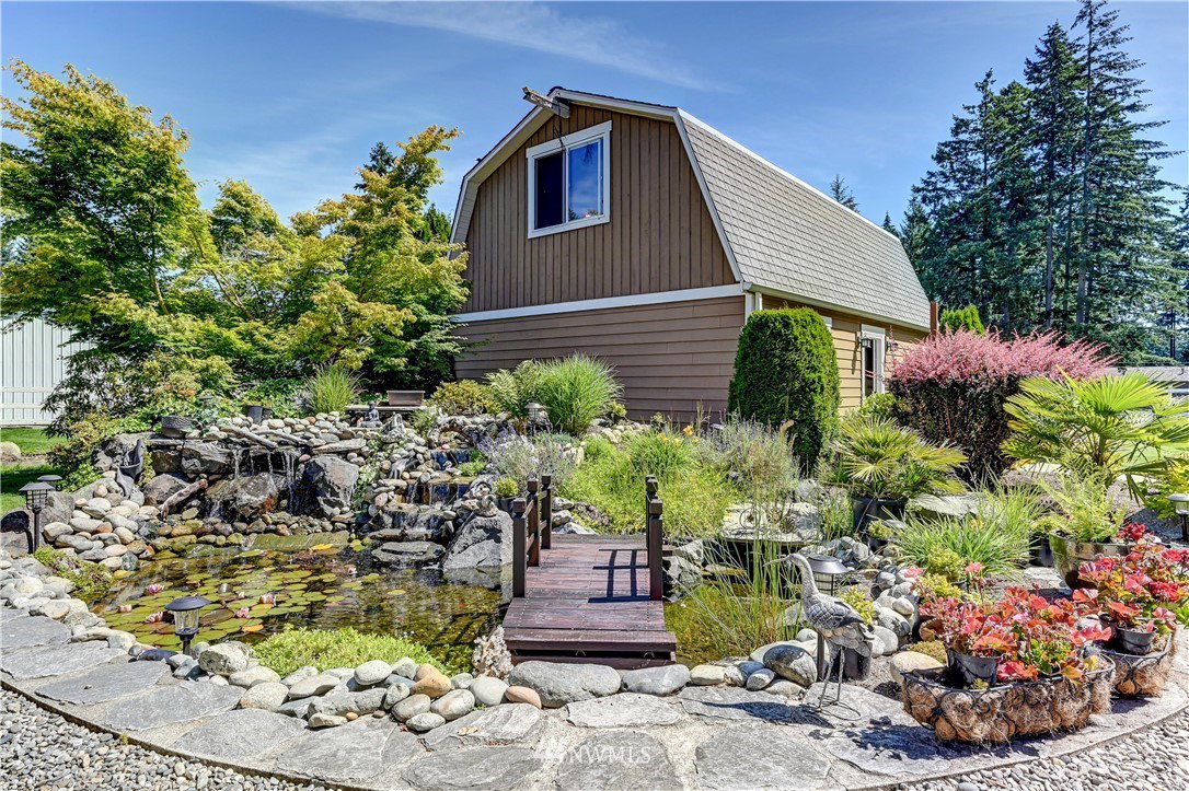 Incomparable luxury awaits in this 2008 custom built 5 bedroom home sited on a level 1 acre lot. This 4,262 S/F masterpiece offers finishes & features 2nd to none including hardwood & travertine flooring, extensive millwork & tons of custom built-ins. Chefs kitchen w/cherry cabinetry topped w/granite. Lux Owner’s suite w/Spa-esque bath & custom walk-in closet. Main floor office/Bonus rm/Guest rm/Detached building w/media & fitness rm/Dual Furnace & AC/Irrigation well/40X30 heated garage/Koi pond