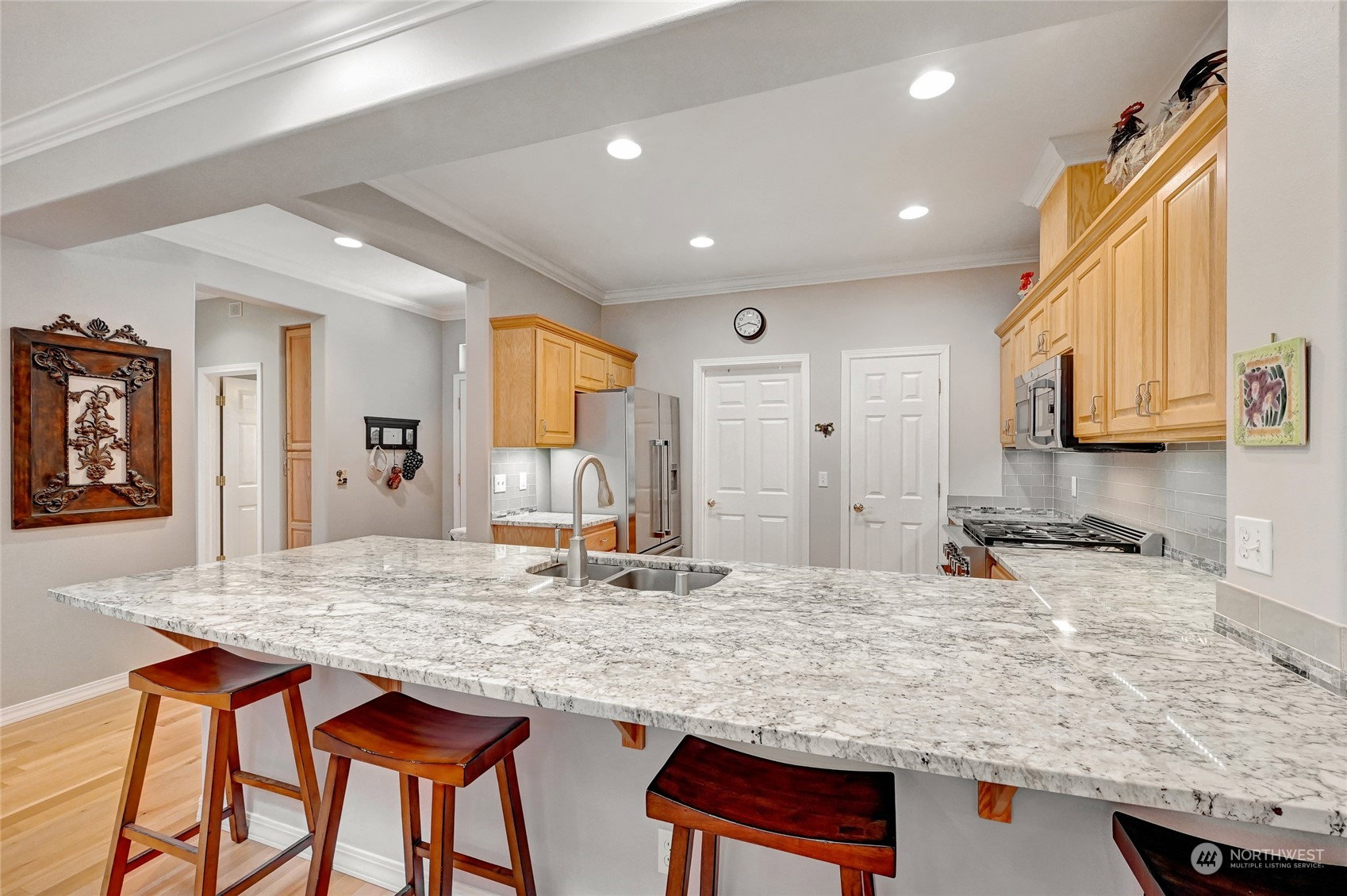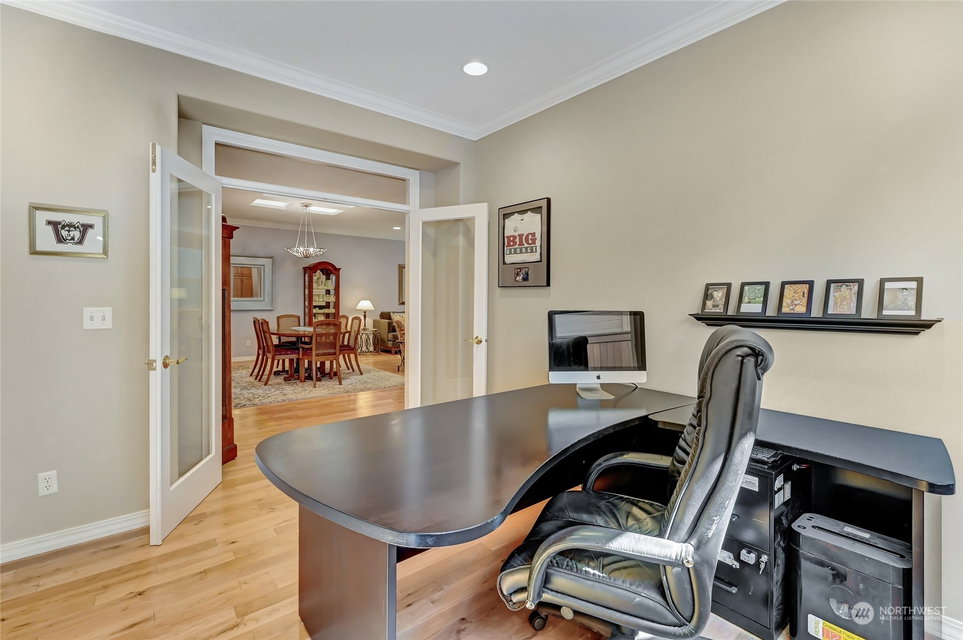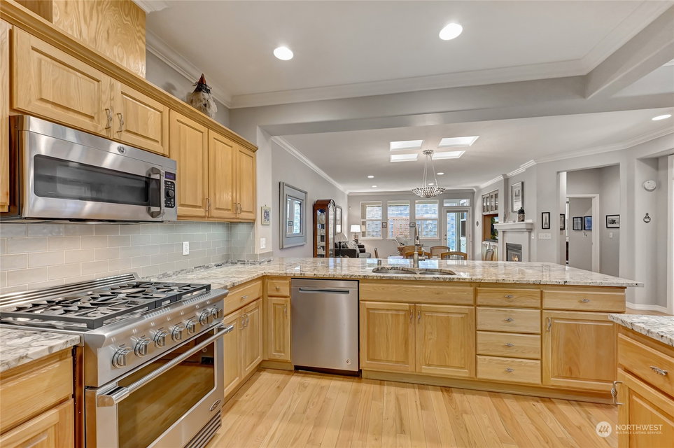 Get ready to enjoy resort style living in the premier 55+ community of Trilogy at Redmond Ridge. This meticulously maintained and tastefully updated Union plan is sited on a quiet tree-lined street close to the club. Hardwood floors flow throughout the great room which is anchored by the gas fireplace and custom built-in media center. Large peninsula kitchen with slab granite counters, glass back splash and newer SS appliances. Spacious primary bedroom w/en-suite bath & walk-in closet. 2nd bedroom w/adjacent full bath. French doors lead to the private den/office. 2-car gar w/tons of storage & work bench. Fresh paint & crown molding. New furnace & AC unit in 2022/H2O tank in 2021. SNOWBIRD ALERT! This home is a low maintenance, turn-key gem!