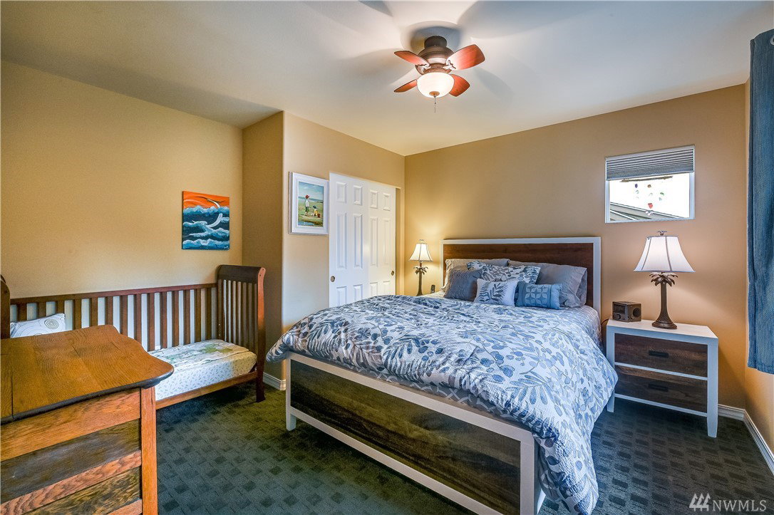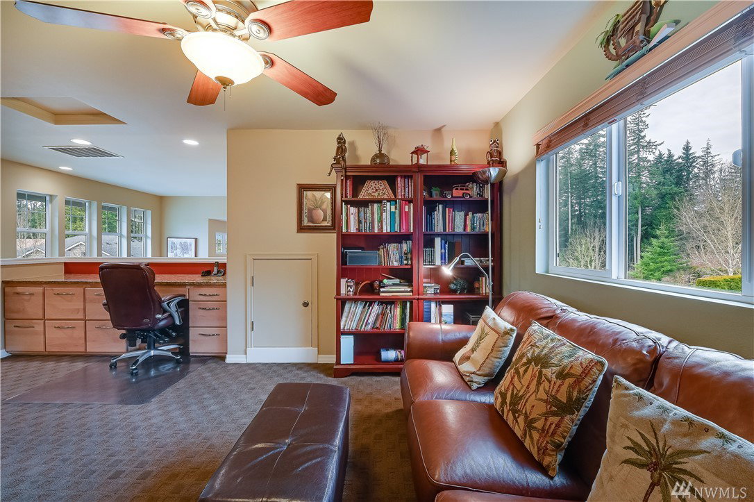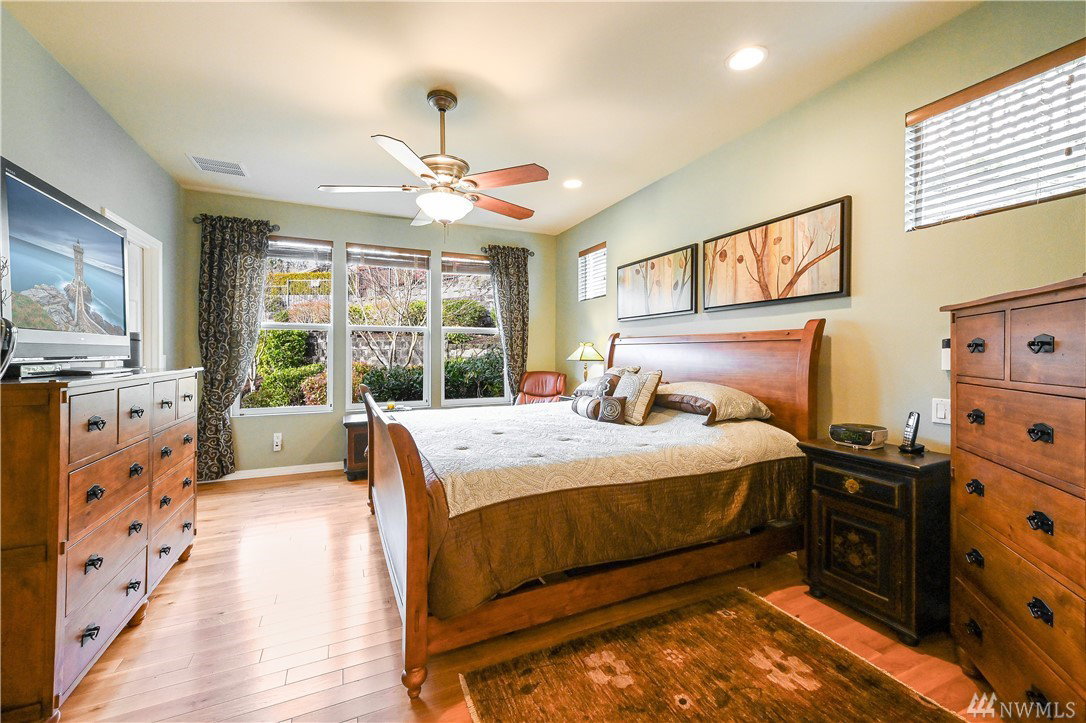 Spectacular stand alone Madison plan on a stellar corner lot maintained by the HOA! Wide open & light filled interiors, generous Master on main with 2 walk-in closets & en-suite bath. Upper level guest room, full bath+versatile open loft w/built-in desk. Upgrades galore; hrdwds, Jenn-Air double oven w/a gas range, kit. desk, hutch & wine cooler, central vac, sec system, surround sound & superior insulation pkg. New ext paint 8/19. Epoxy garage flr. Greenbelt views. Age 53+ no kids under 18
