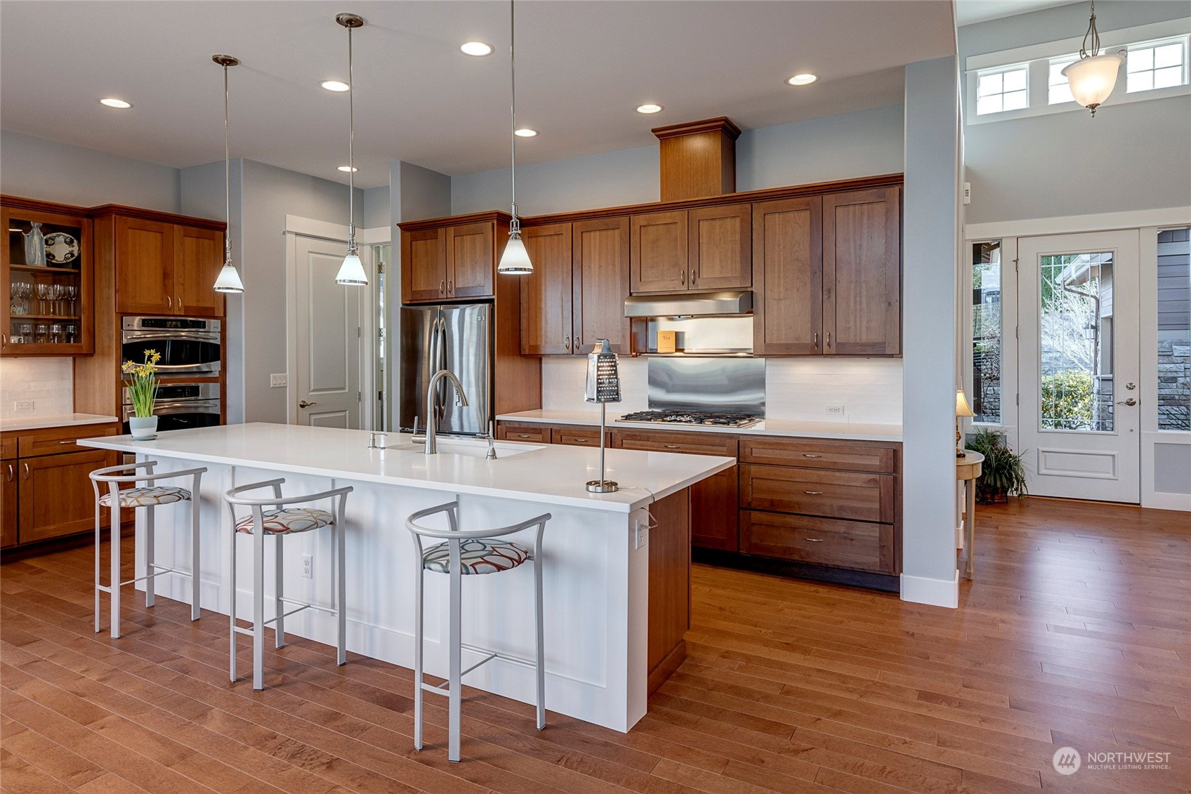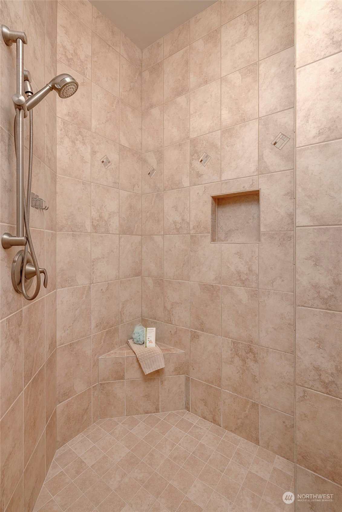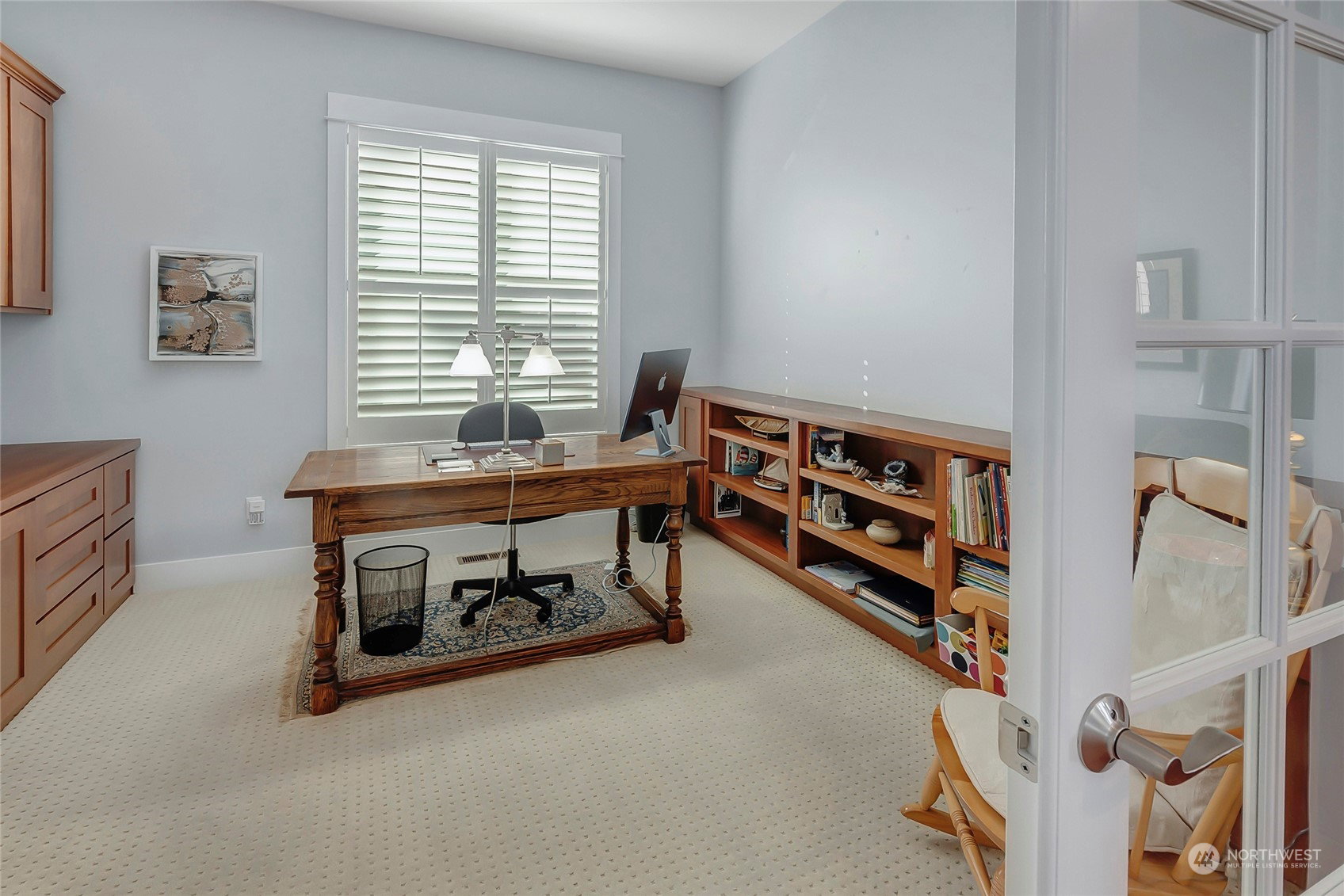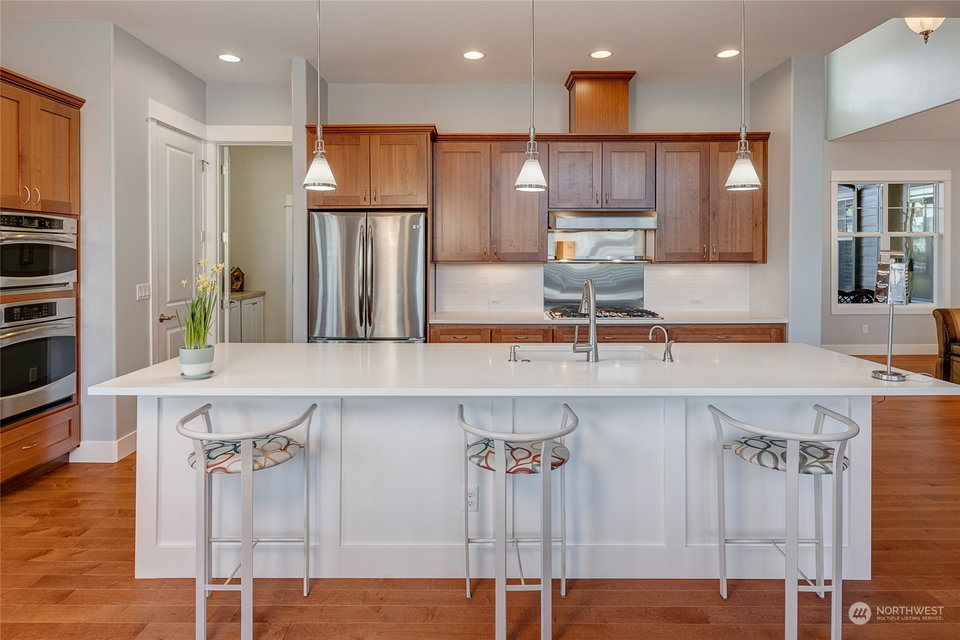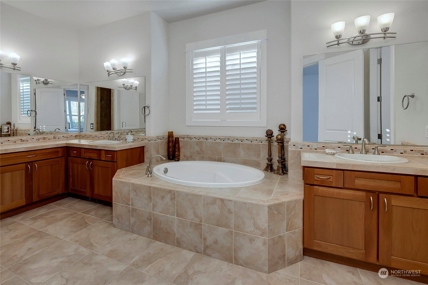 Enjoy huge mountain views from this contemporary Hemlock plan home that stands above the others with so many updates and features! Incredibly light & bright great room w/new solid Maple hardwoods, custom fireplace & built-ins, wood cabs, new quartz counters & plantation shutters. Picture window added to great room for views. Office w/tasteful built-ins. Primary suite w/2 walk-in closets & a truly custom step-in tiled shower. Spacious 2nd primary suite w/a tiled bath. Fabulous guest bath. Freshly painted interiors. Newer composite deck to take in the views & a secret garden full of blooming perennials. Roof & siding replaced 2018. Central vac, A/C & owned solar panels. Ages 55+ (53+ w/HOA approval) no one under 18. Pre-inspected.