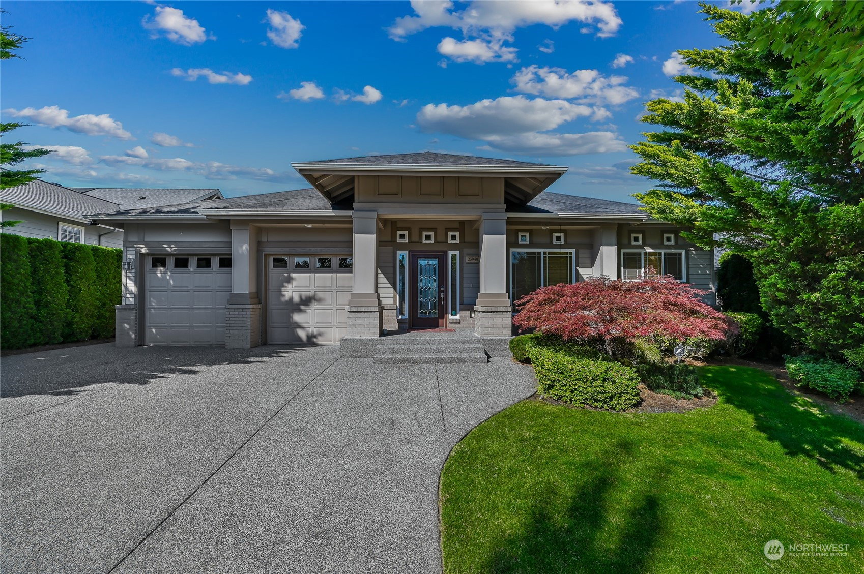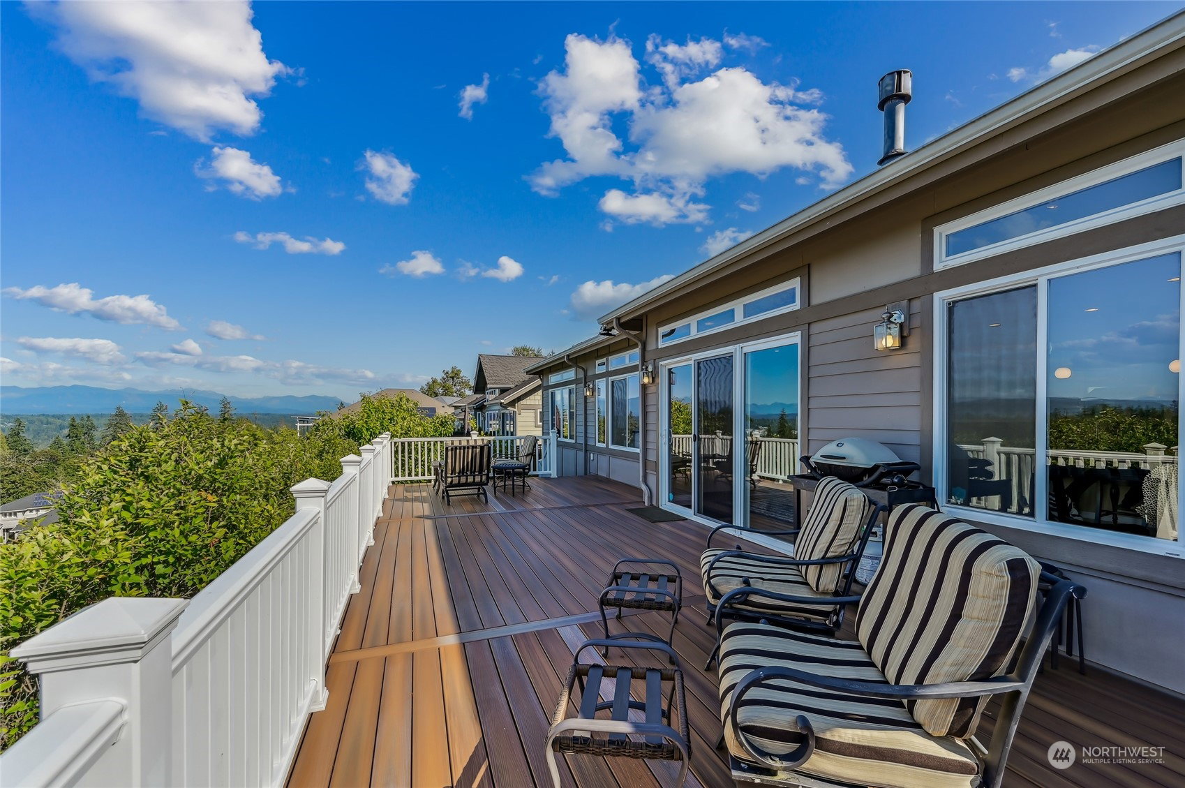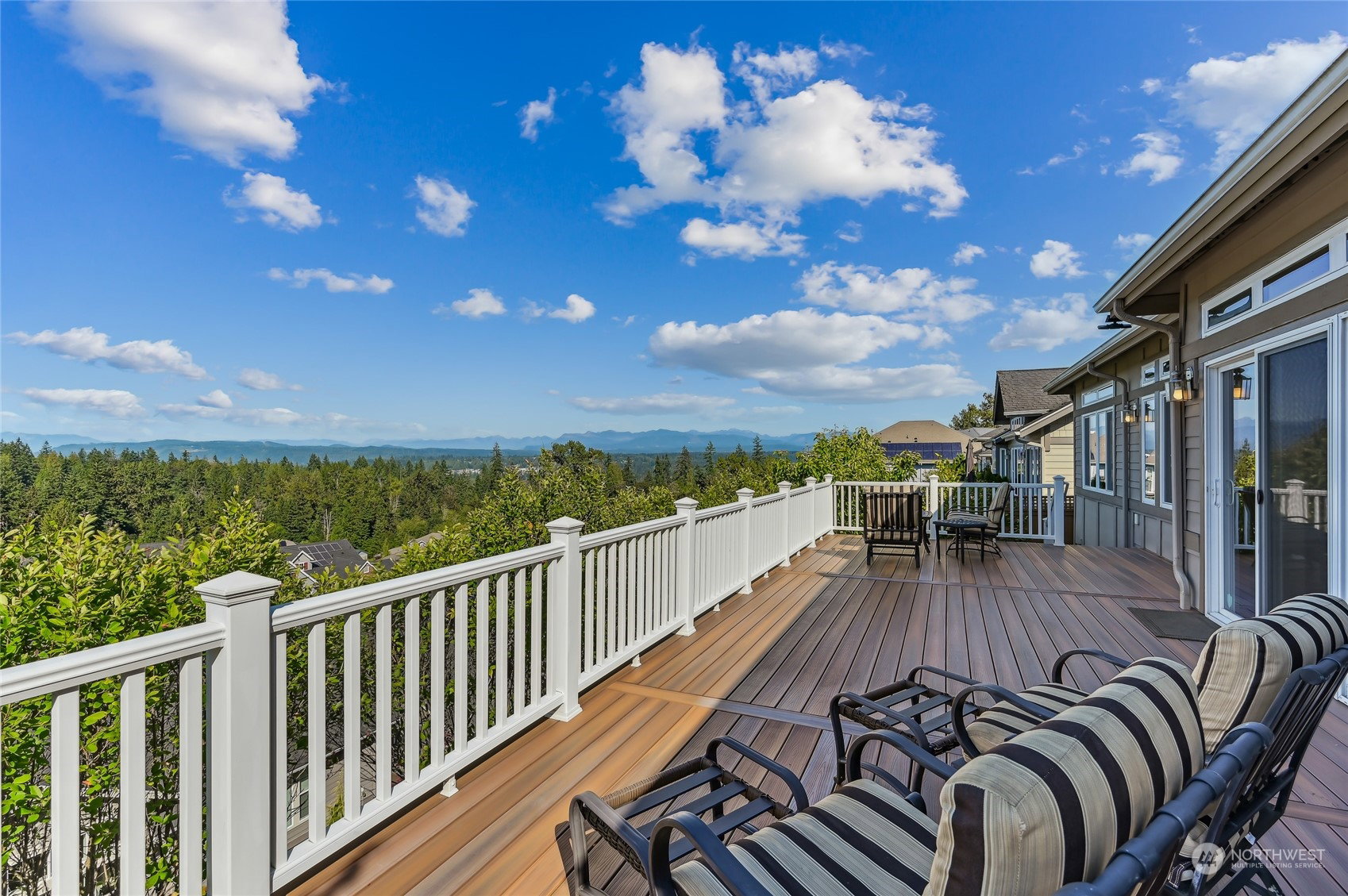 Trilogy Trifecta! Breathtaking Views. Contemporary home. A+ Location. You can have it all in this gorgeous Cedar model home sited on a quiet cul-de-sac designed to showcase its sweeping Cascade Mountain, Snoqualmie Valley and big sky views. Sprawling 2,410 asf single story home w/a huge light filled great room with large transom windows that frame the gorgeous views. Expansive kitchen with slab counters and top shelf SS appliances. Stunning primary en-suite w/a soaking tub & step in shower. Handsome home office + an extra room for 2nd office/hobby/theater/or 3rd bdrm potential. 2nd Primary w/ensuite bath. Pristine hardwood floors flow thru-out. Relax and entertain on the oversized high quality composite deck with unobstructed views. 55+