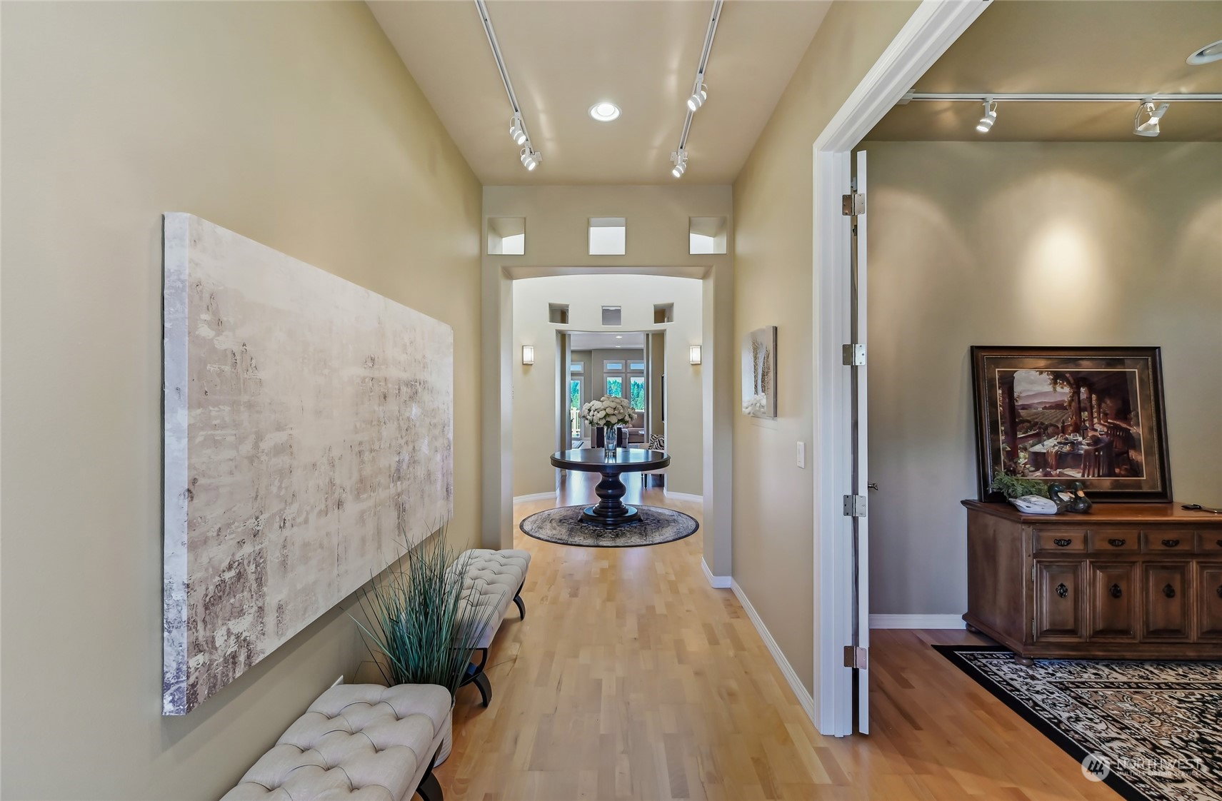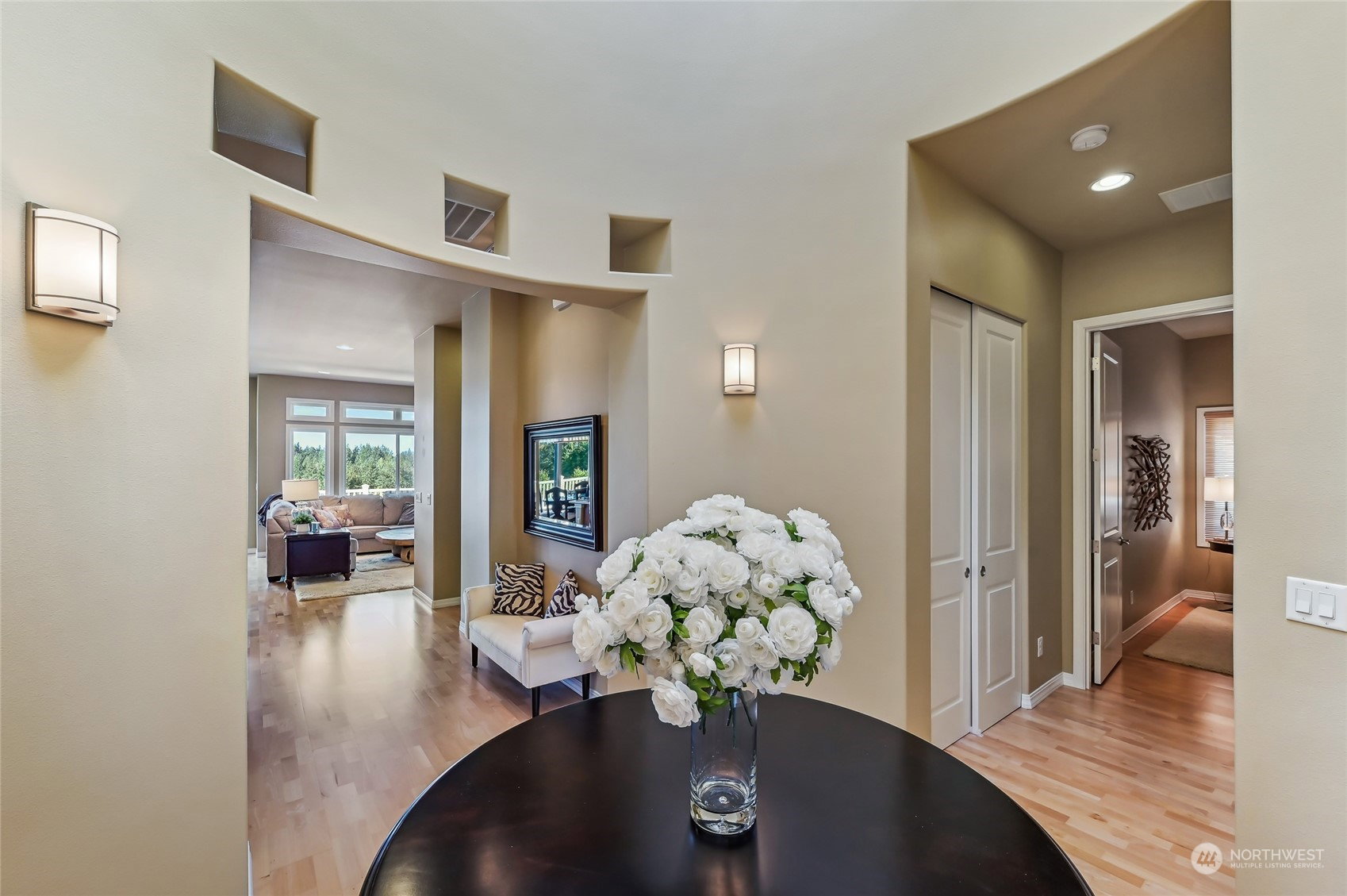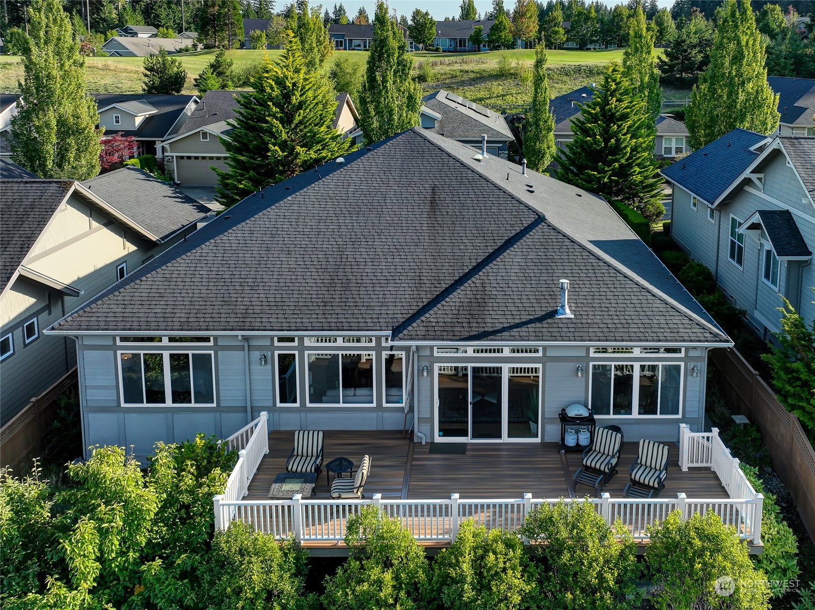 Trilogy Trifecta! Breathtaking Views. Contemporary home. A+ Location. You can have it all in this gorgeous Cedar model home sited on a quiet cul-de-sac designed to showcase its sweeping Cascade Mountain, Snoqualmie Valley and big sky views. Sprawling 2,410 asf single story home w/a huge light filled great room with large transom windows that frame the gorgeous views. Expansive kitchen with slab counters and top shelf SS appliances. Stunning primary en-suite w/a soaking tub & step in shower. Handsome home office + an extra room for 2nd office/hobby/theater/or 3rd bdrm potential. 2nd Primary w/ensuite bath. Pristine hardwood floors flow thru-out. Relax and entertain on the oversized high quality composite deck with unobstructed views. 55+