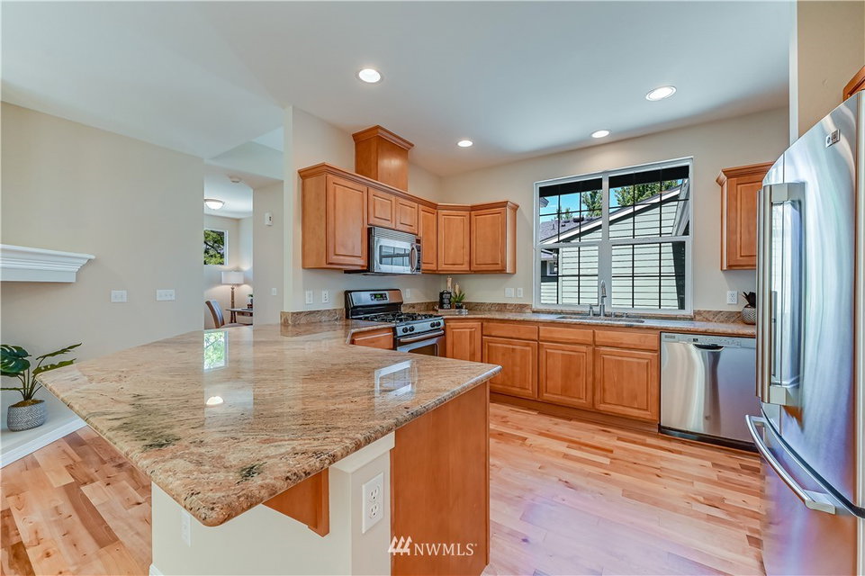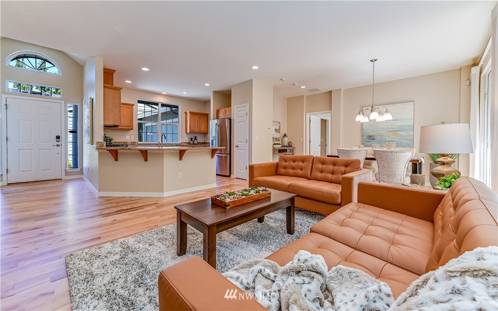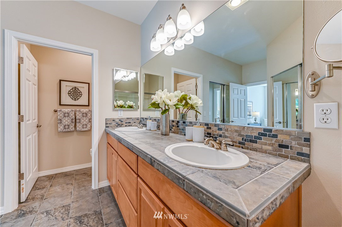 Resort style living awaits in this coveted Discovery model home truly the pearl of the Port collection. Sited on a premium greenbelt lot at the end of a quiet cul-de-sac with serene forest views this well-designed home is the complete package. Tall ceilings and an abundance of windows create light & airy living spaces. Expansive great room flows easily to fantastic outdoor living space w/large deck perfect for BBQ’s and relaxing w/friends. Spacious kitchen w/granite counters & SS appliances. Owners en-suite w/step-in shower & walk-in closet. 2nd bdrm w/adjacent full bath perfect for your guests. Handy home office nook as well. Just completed updates include refinished hrdwd floors, freshly painted interior & new carpet in both bedrooms. 55+