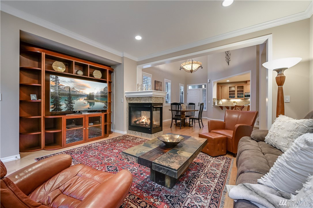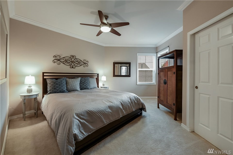 Enjoy evergreen views, a serene setting, and sunny, southern outlook year round from the main living areas of this Washington floor plan. Situated on a premium lot and loaded with upgrades including wood wrapped windows, crown molding and hardwood floors. Spectacular kitchen features slab granite, 42” cabinets & SS appliances. Main floor master w/lux bath and large walk-in closet. Upper level guest suite w/adjacent full bath and bonus loft. 2-car garage w/quality storage cabinets. 55+community