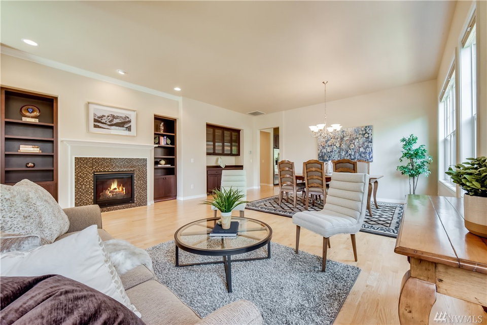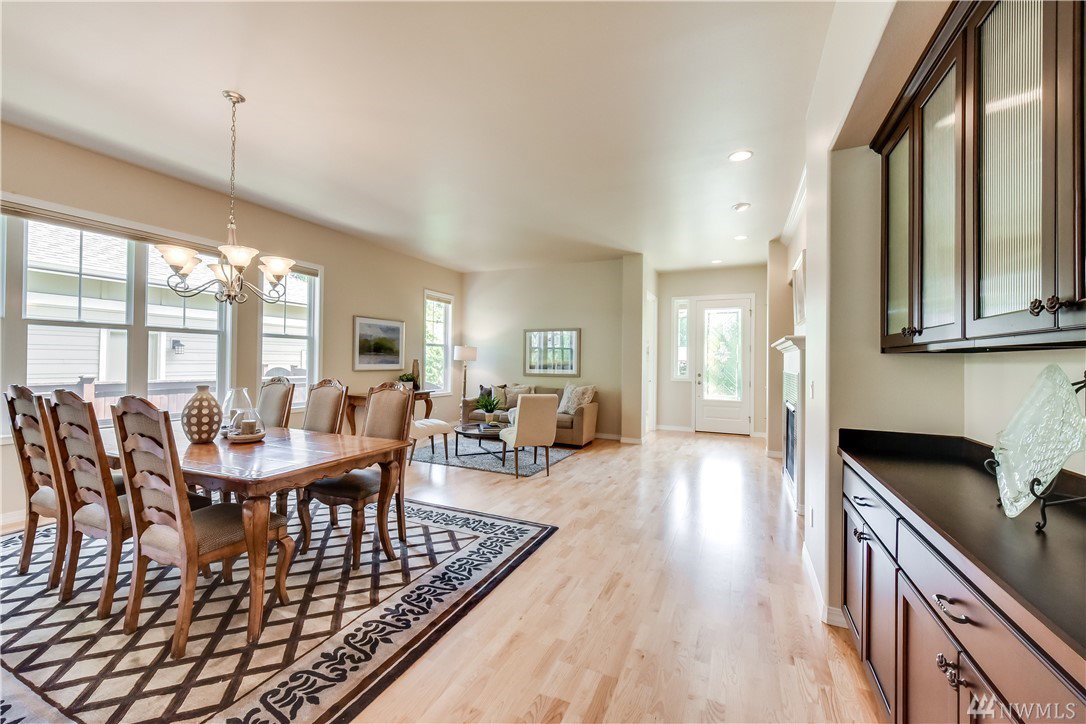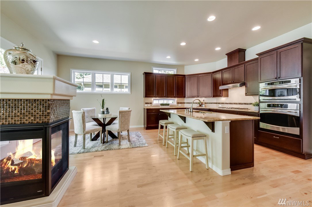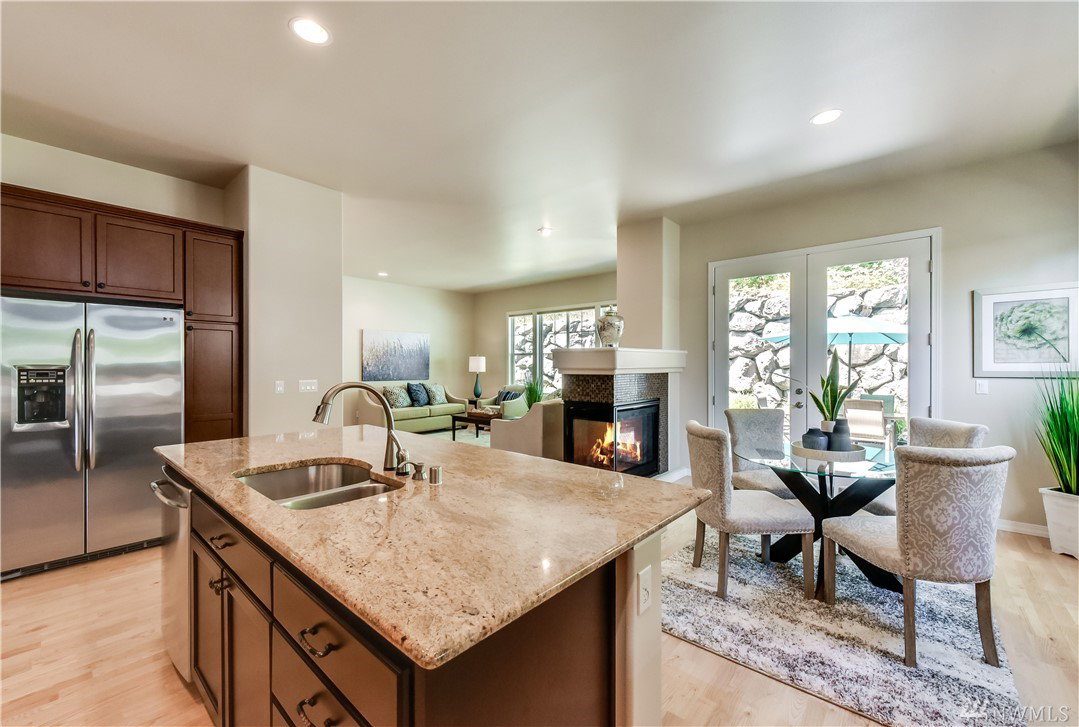 Exquisite Maple model home, elegantly appointed, filled w/upgrades & backs to greenbelt w/forest views. ‘Heart of the Home’ great room floor plan w/10′ ceilings & generous windows bathe this home in natural light. Culinary artists will delight in the well-appointed gourmet kitchen. Lavish Owner’s suite w/lux bath. The 2 additional bdrms are perfect for guests, 2nd office or craft room. Easy flow from indoor spaces to expansive BBQ patio. 2 gas fireplaces/Central AC/Hrdwd Flrs/Custom built-ins.