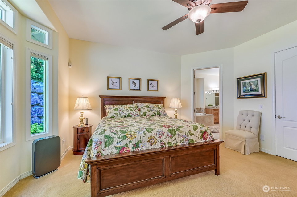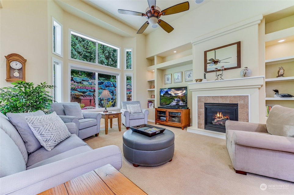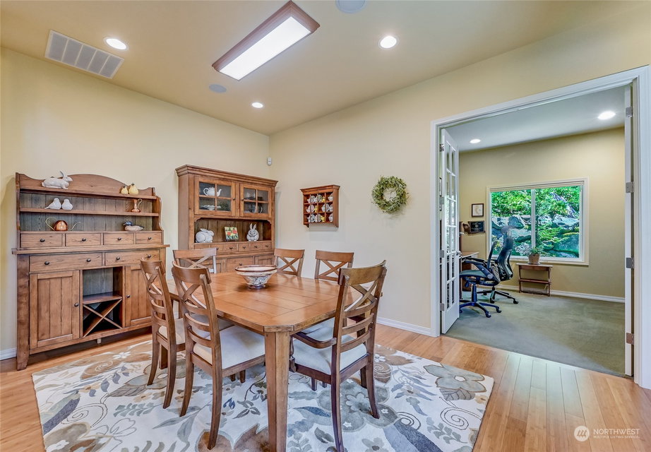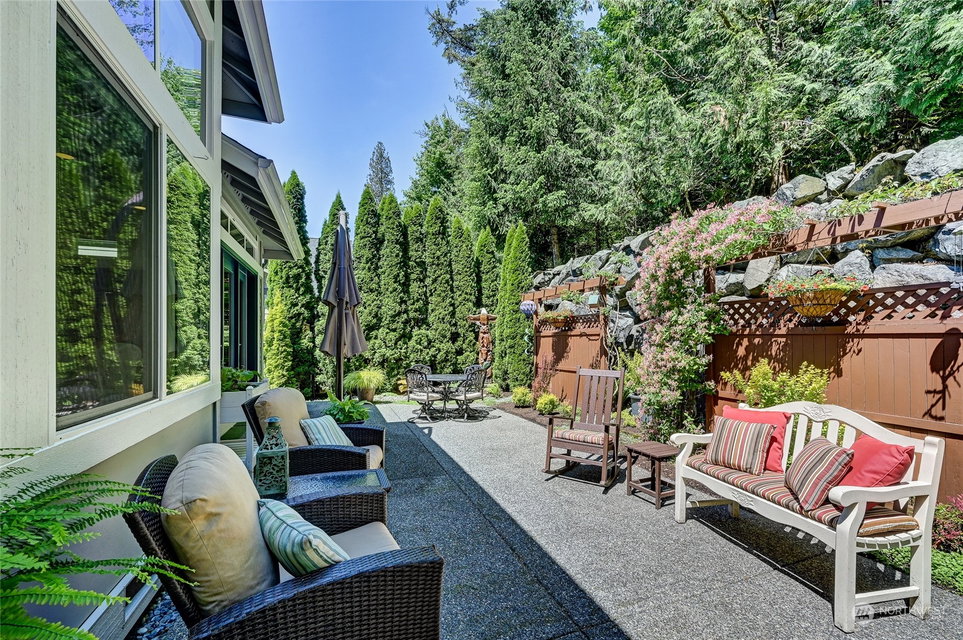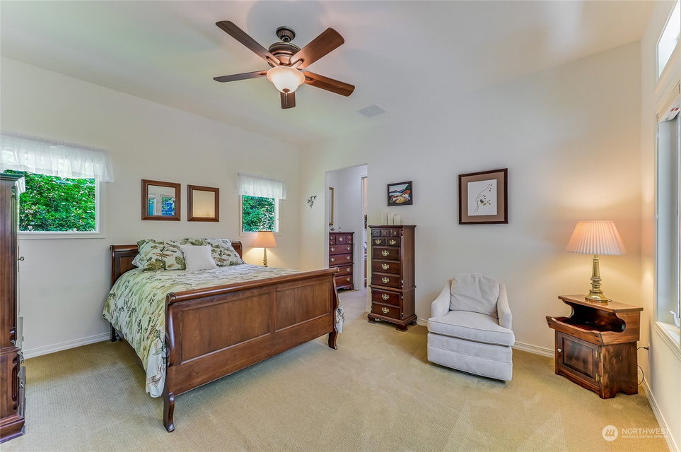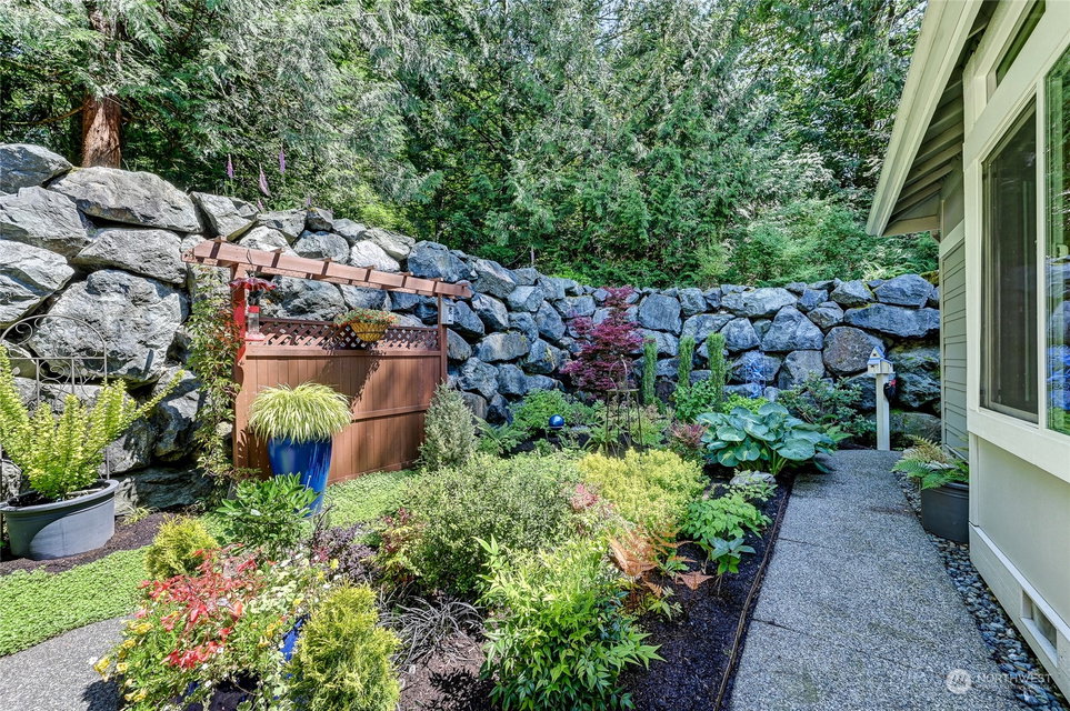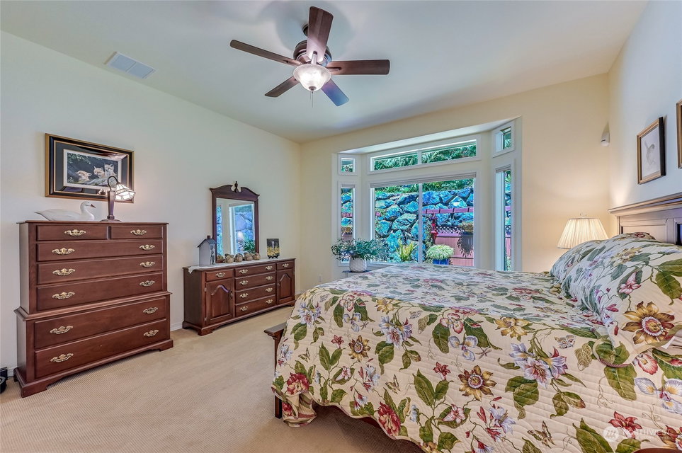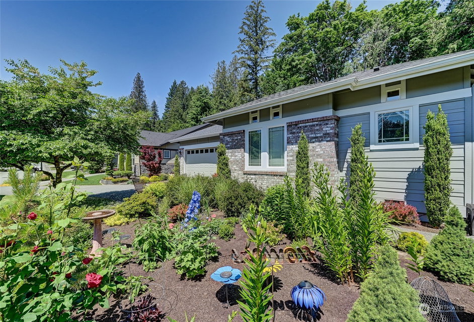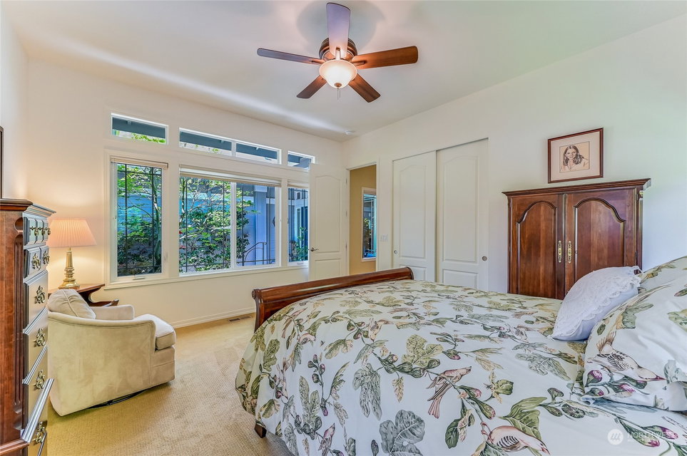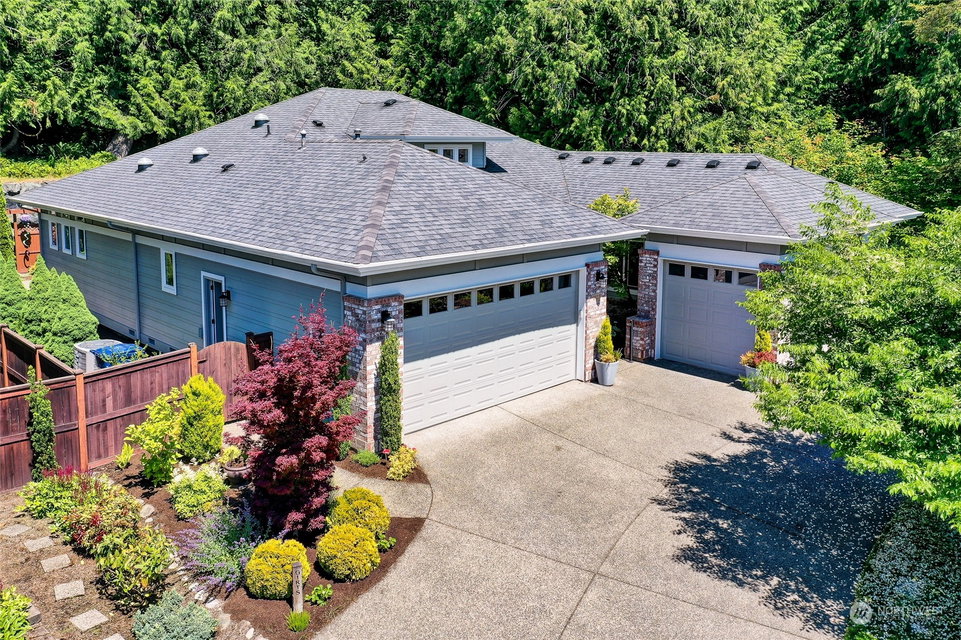 Superb Hemlock model sited at the end of a quiet street on a premium, double-sided greenbelt lot is elegantly appointed and updated throughout. Charming, courtyard entry leads to the vaulted great room with bamboo floors, gas fireplace & wood wrapped windows that frame the forest views. Island kitchen w/42” Alder cabinetry topped with granite counters & SS appliance pkg. Owner’s suite includes spa-like bath & 2 walk-in closets. 2nd Primary bedroom w/en-suite bath. Large laundry/mud room w/sink & storage. Oversized, private patio surrounded by lush, flowering gardens. 2 car garage w/storage racks + 3rd bay garage for hobbies or golf cart. Central AC/Surround Sound/Gutter Covers/3 Solar Tubes/Central Vac/Generator & Transfer switch. Ages 55+