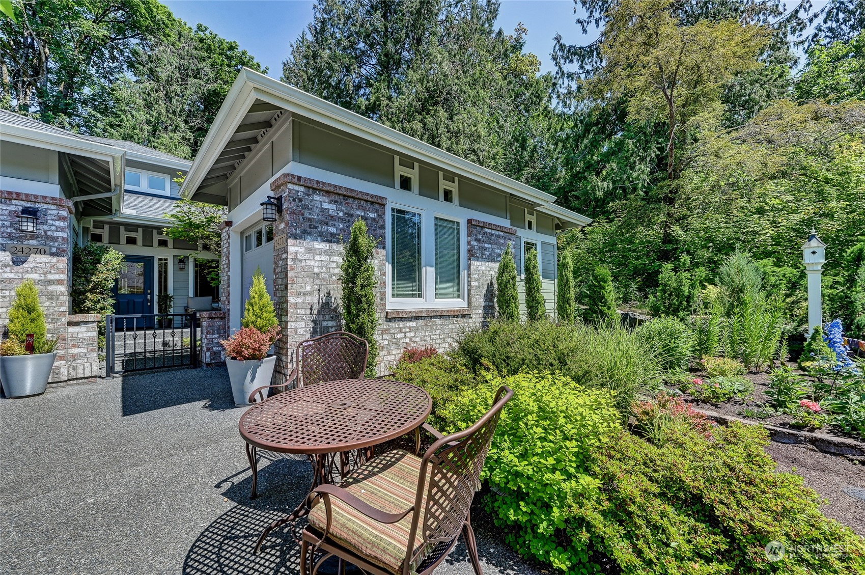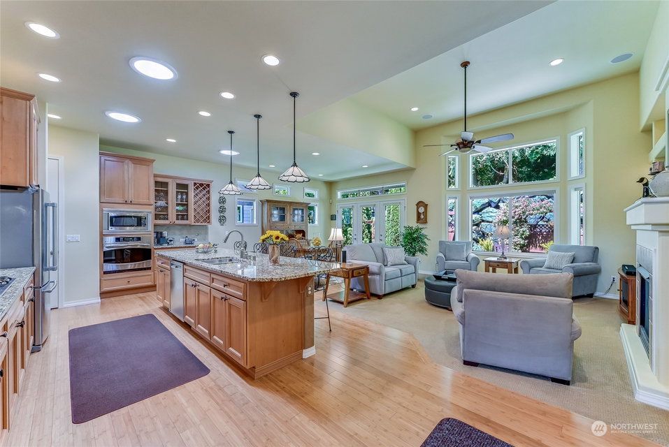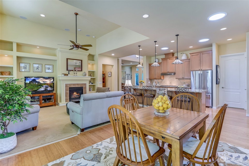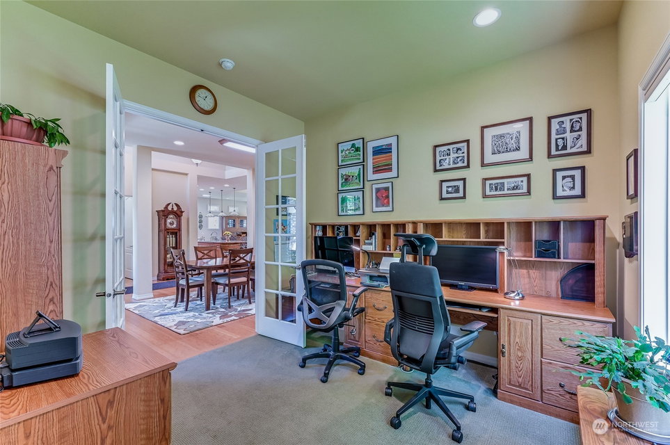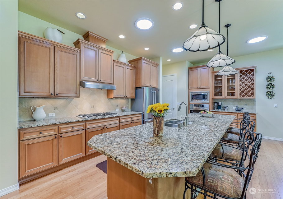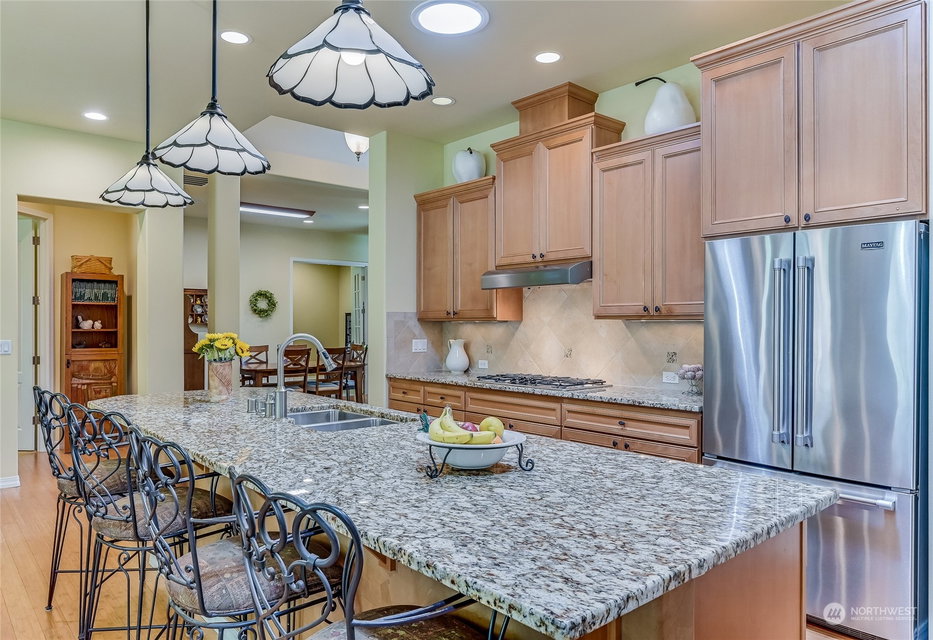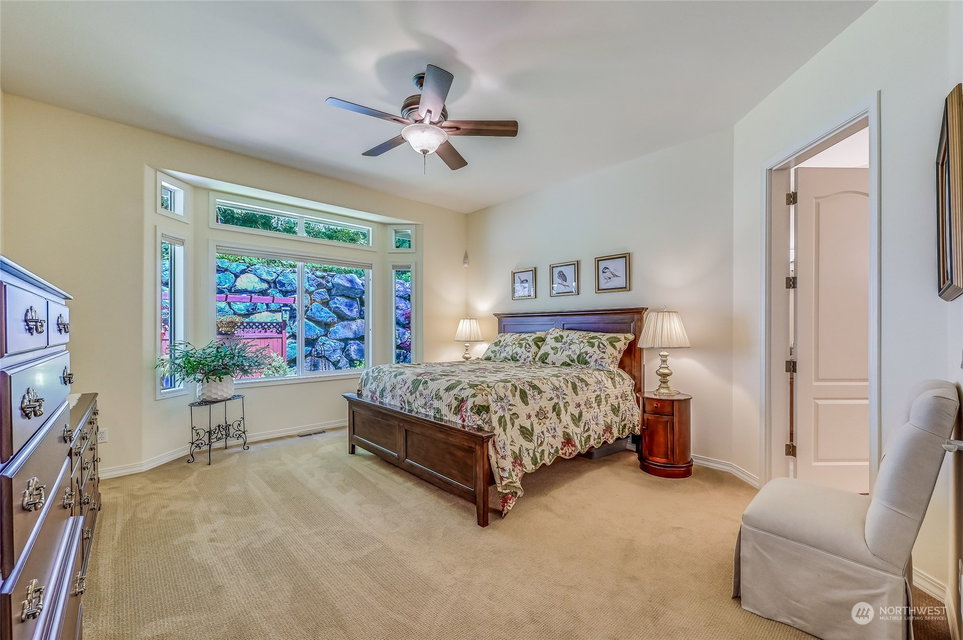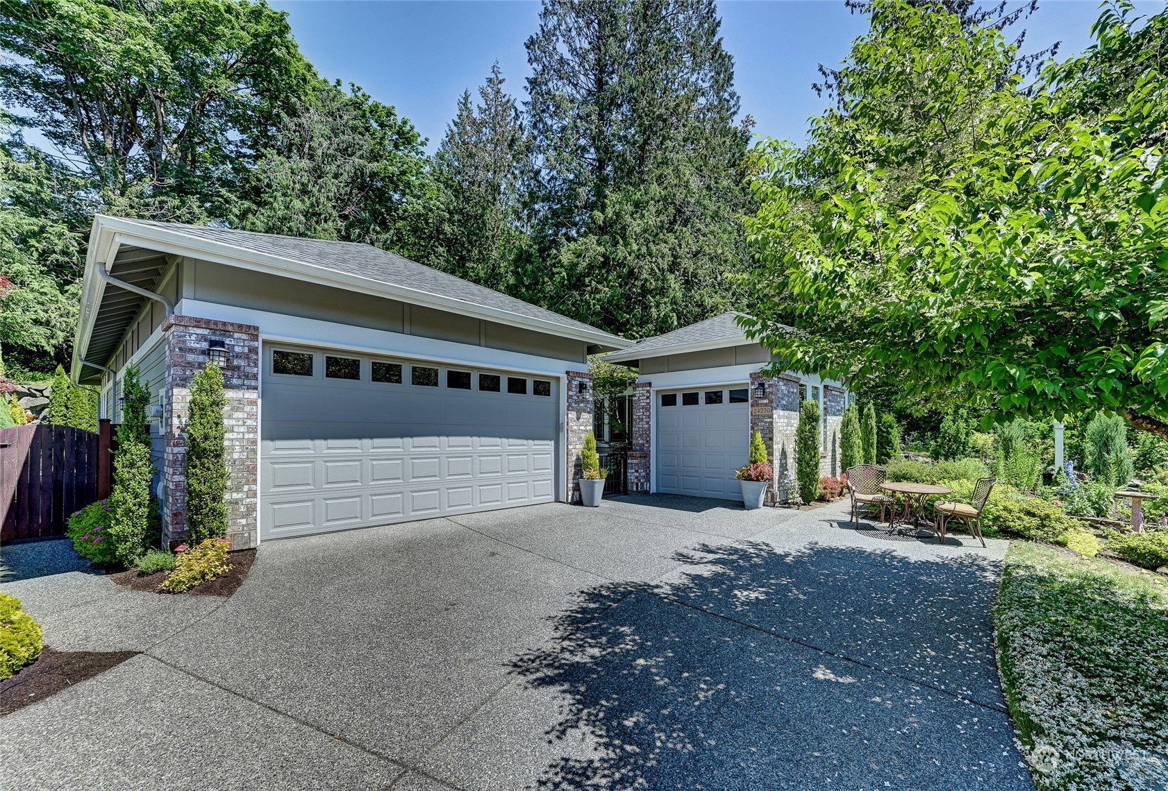 Superb Hemlock model sited at the end of a quiet street on a premium, double-sided greenbelt lot is elegantly appointed and updated throughout. Charming, courtyard entry leads to the vaulted great room with bamboo floors, gas fireplace & wood wrapped windows that frame the forest views. Island kitchen w/42” Alder cabinetry topped with granite counters & SS appliance pkg. Owner’s suite includes spa-like bath & 2 walk-in closets. 2nd Primary bedroom w/en-suite bath. Large laundry/mud room w/sink & storage. Oversized, private patio surrounded by lush, flowering gardens. 2 car garage w/storage racks + 3rd bay garage for hobbies or golf cart. Central AC/Surround Sound/Gutter Covers/3 Solar Tubes/Central Vac/Generator & Transfer switch. Ages 55+