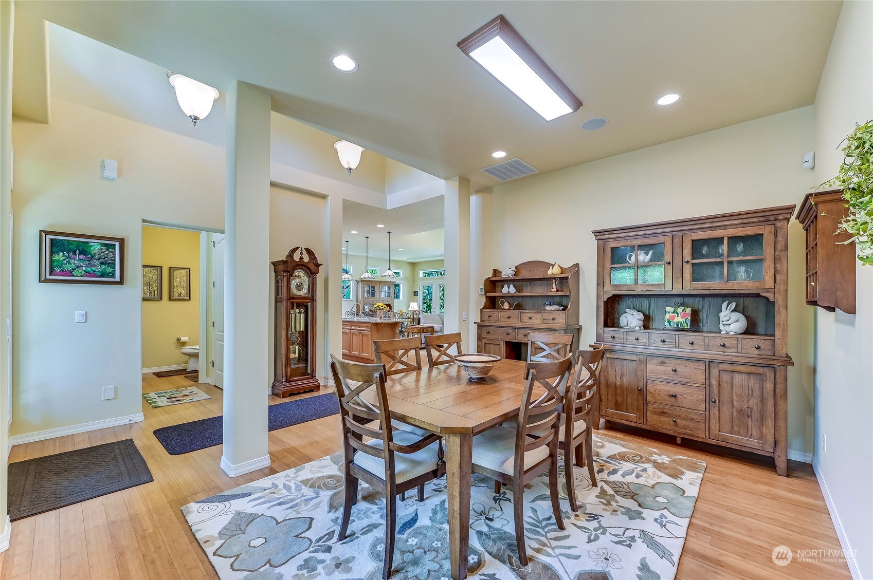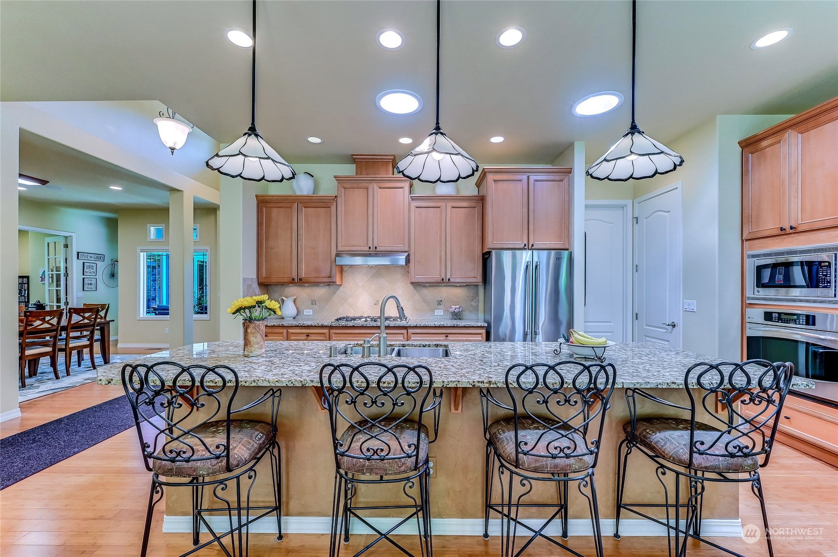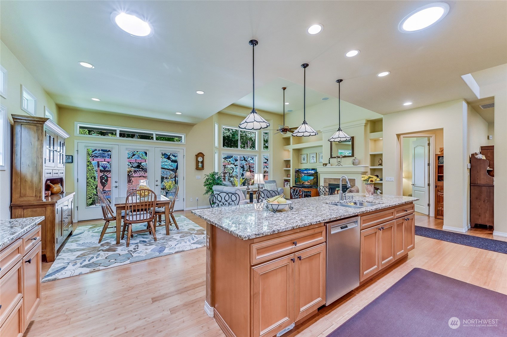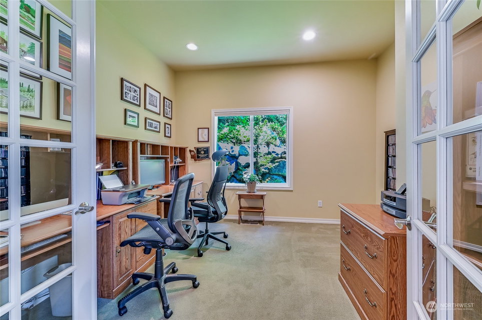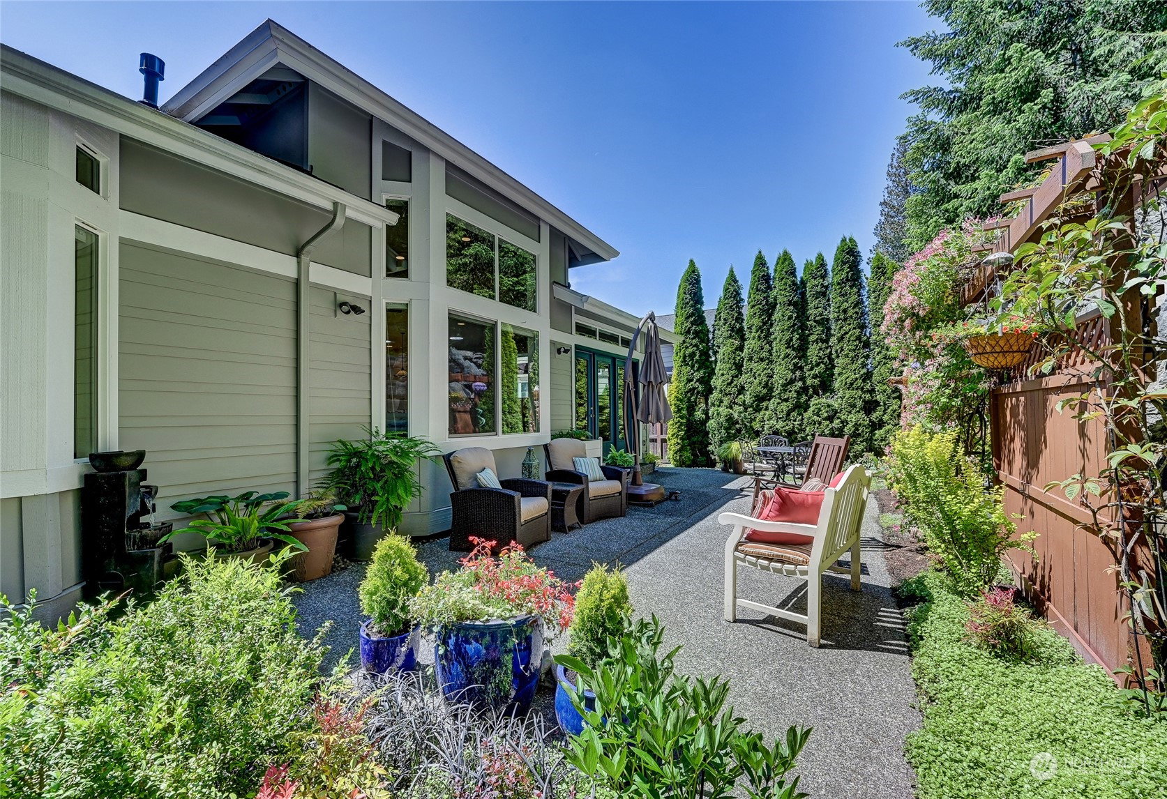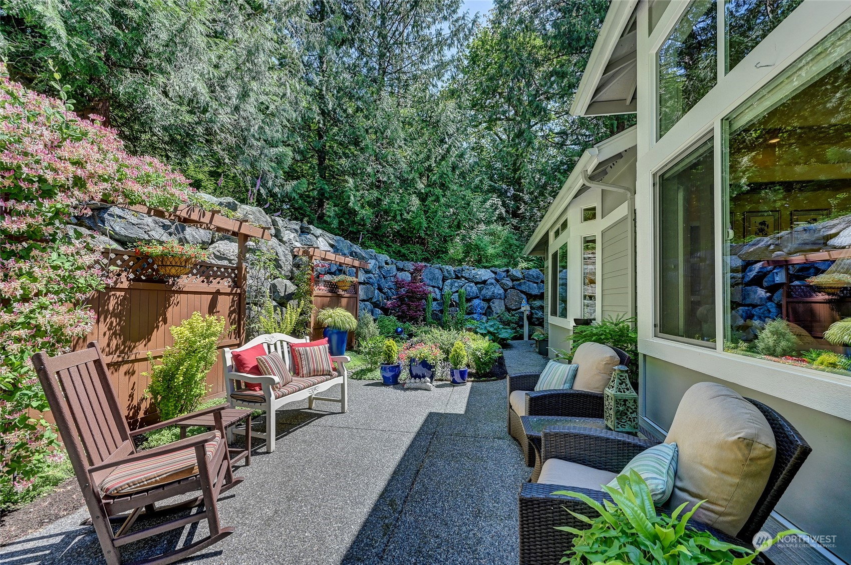 Superb Hemlock model sited at the end of a quiet street on a premium, double-sided greenbelt lot is elegantly appointed and updated throughout. Charming, courtyard entry leads to the vaulted great room with bamboo floors, gas fireplace & wood wrapped windows that frame the forest views. Island kitchen w/42” Alder cabinetry topped with granite counters & SS appliance pkg. Owner’s suite includes spa-like bath & 2 walk-in closets. 2nd Primary bedroom w/en-suite bath. Large laundry/mud room w/sink & storage. Oversized, private patio surrounded by lush, flowering gardens. 2 car garage w/storage racks + 3rd bay garage for hobbies or golf cart. Central AC/Surround Sound/Gutter Covers/3 Solar Tubes/Central Vac/Generator & Transfer switch. Ages 55+