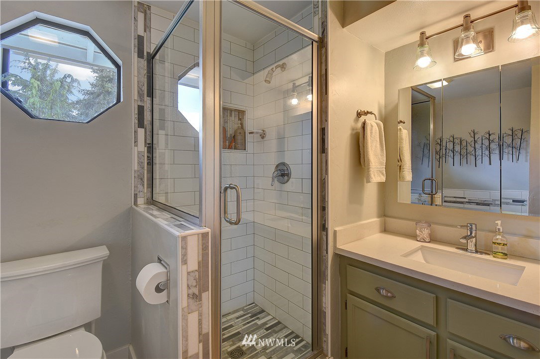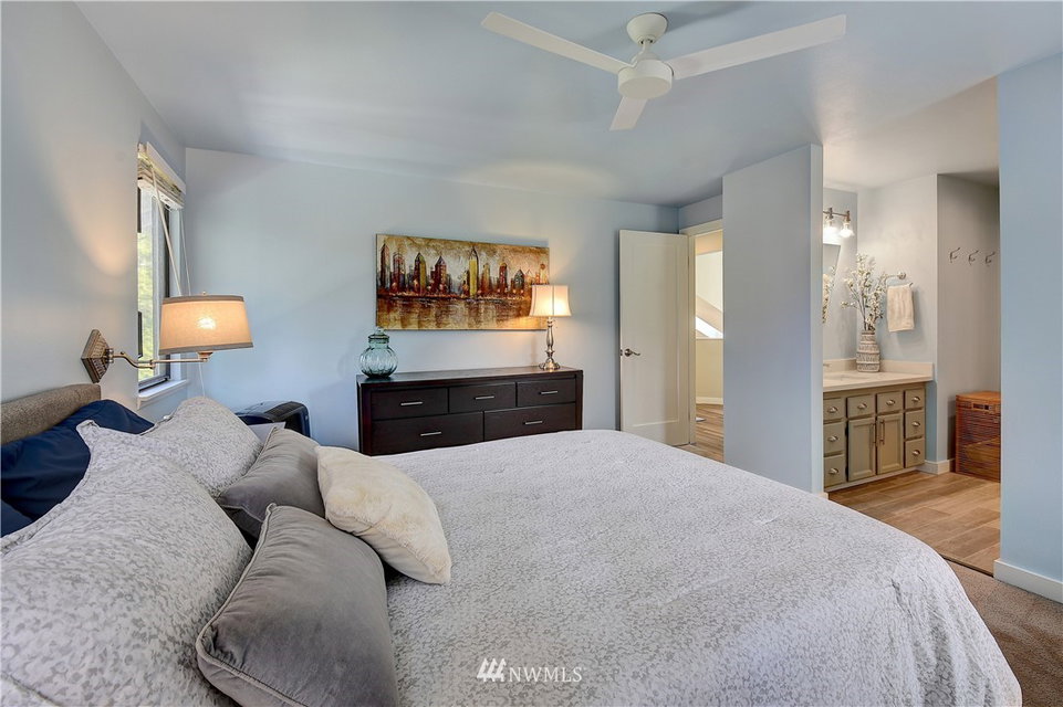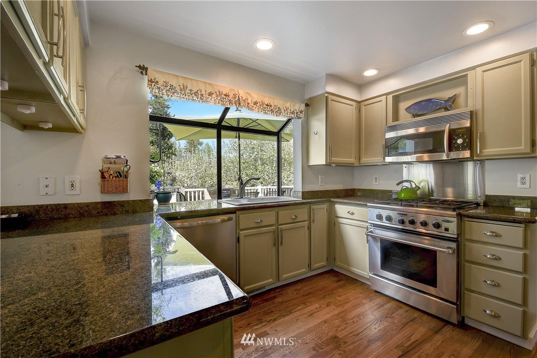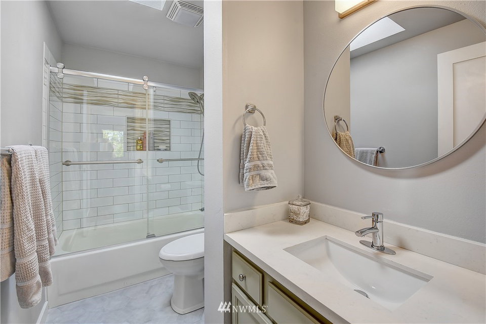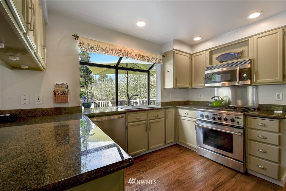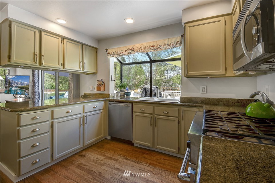 A contemporary remodel combined with a great floor plan of casual and formal rooms, this home offers it all! Kitchen w/light gray cabinets, slab granite & stainless apps and adjoining fam rm w/a brick fireplace. Rich hrwds in entry, kit & fam room. Vltd living rm ceiling & gas firplace. Primary bdrm suite w/a new bath incl a deep soaking tub, shower, split vanities and heated tile flr. 2 addt’l bdrms (1 w/a Murphy bed) + updated main bath. New hrwds upstairs, new carpet, front door, int. doors & trim, water heater, ext paint in 2020. Nest thermostat. In the fenced backyard you’ll find the huge 40 x 16 new Trex deck w/nat gas stub, sunny level yard. No pesky HOA here! Pre-inspected. Turn key ready, just unpack and start enjoying summer!