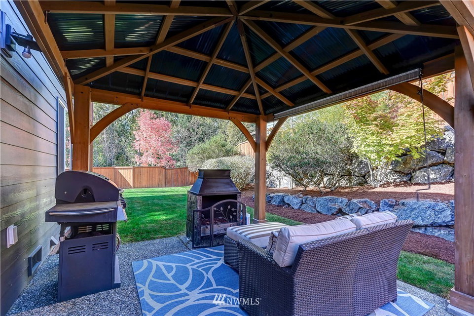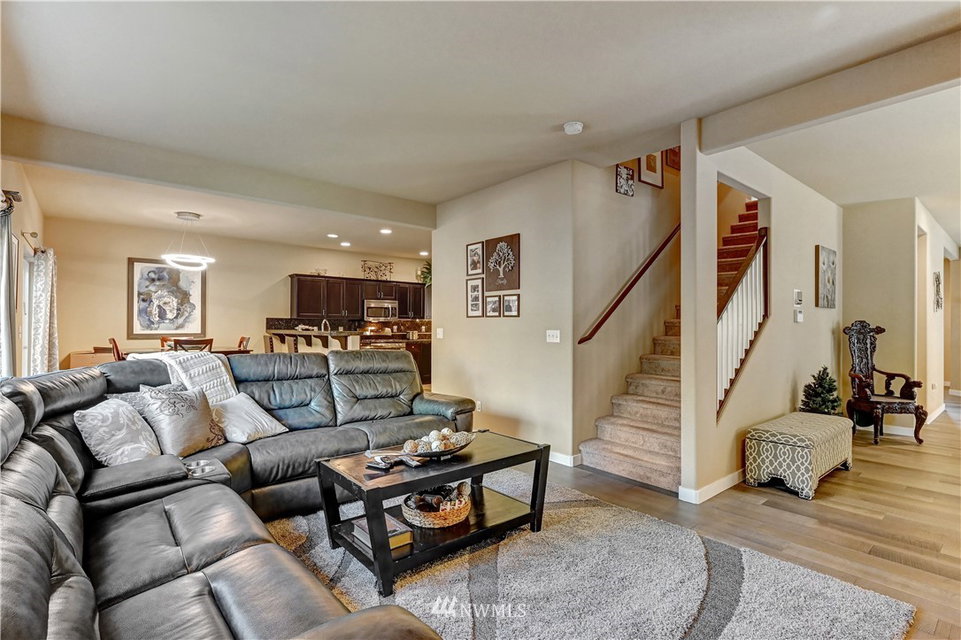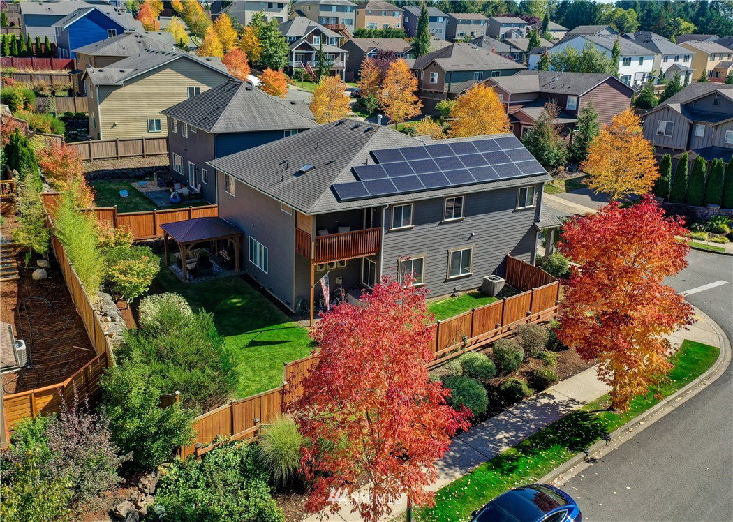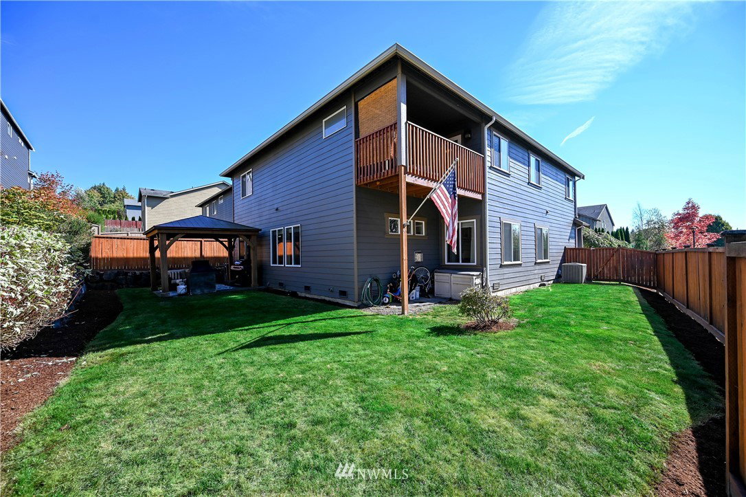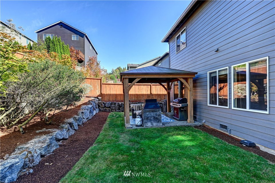 Immaculate home in the coveted Fox Hollow neighborhood of charming Duvall awaits you. This 2,942 S/F home includes 4bdrms/2.5bths and is better than new w/upgrades throughout. Flexible floor plan features open design plus formal dining room, new wide plank hardwoods connect the main floor living spaces. Chef’s kitchen w/rich espresso cabinetry topped w/granite & SS appliances opens to large family room w/gas fireplace flanked by built-ins. 3 large bdrms up including spacious master w/spa-esque bath & private deck. 4th bdrm on the main floor. Media/bonus room the home theater equipment is inc. Large flex loft area. Fenced backyard w/patio, FP & gazebo. Solar panels/3 Powerwall batteries & car charger. Central AC. Community park w/play area.