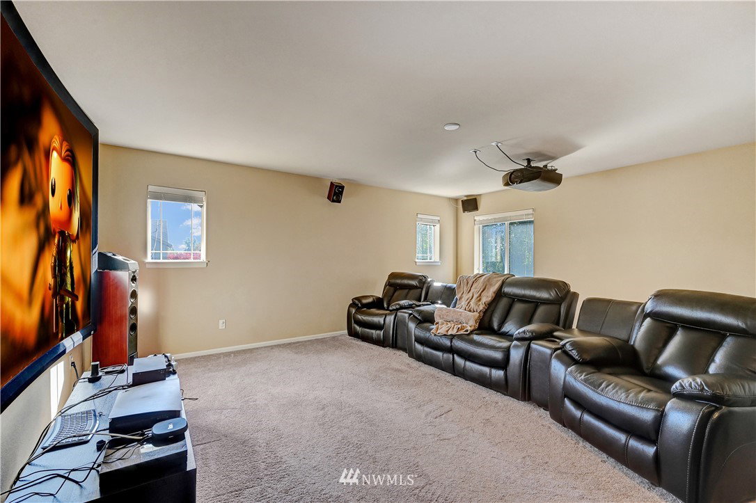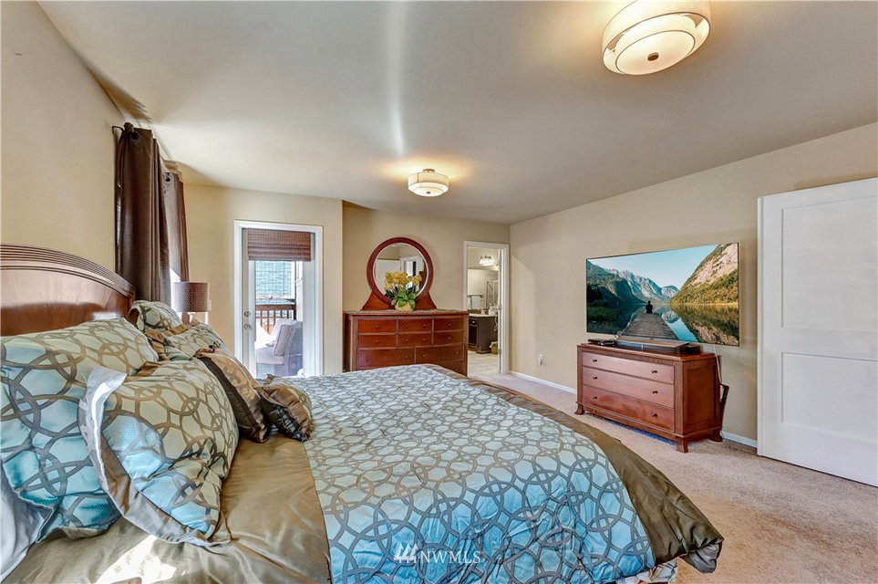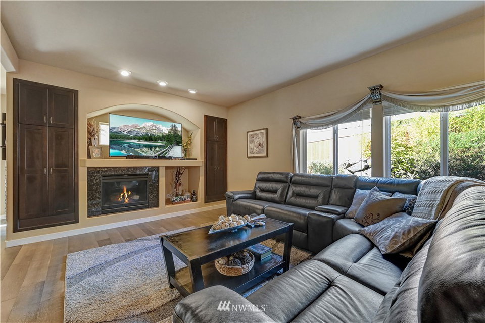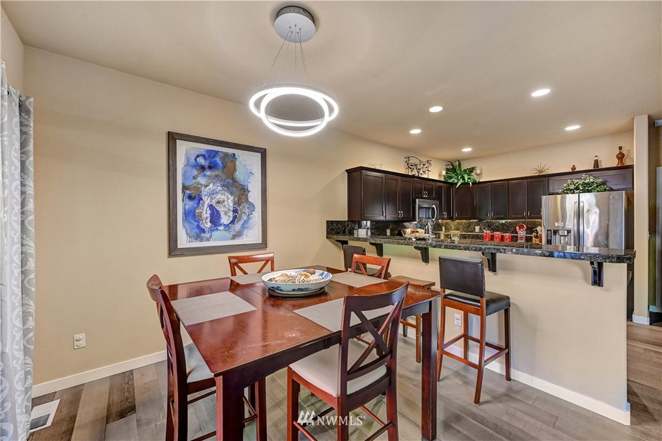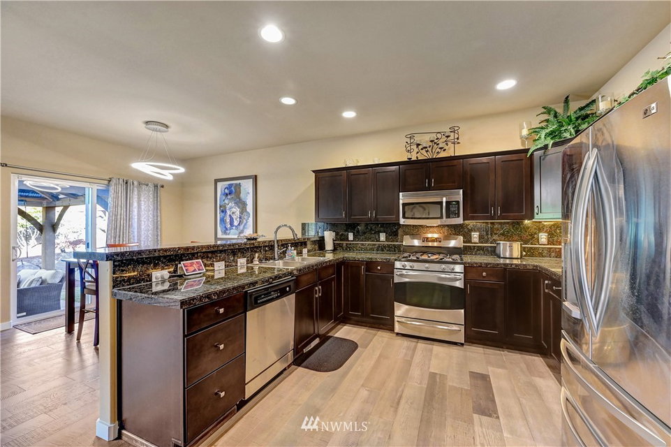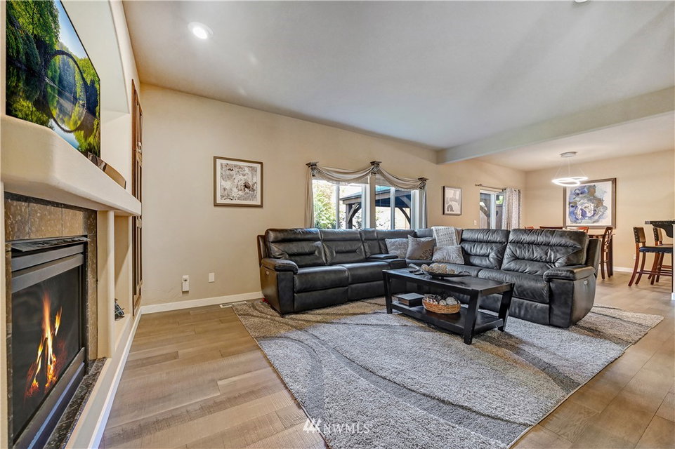 Immaculate home in the coveted Fox Hollow neighborhood of charming Duvall awaits you. This 2,942 S/F home includes 4bdrms/2.5bths and is better than new w/upgrades throughout. Flexible floor plan features open design plus formal dining room, new wide plank hardwoods connect the main floor living spaces. Chef’s kitchen w/rich espresso cabinetry topped w/granite & SS appliances opens to large family room w/gas fireplace flanked by built-ins. 3 large bdrms up including spacious master w/spa-esque bath & private deck. 4th bdrm on the main floor. Media/bonus room the home theater equipment is inc. Large flex loft area. Fenced backyard w/patio, FP & gazebo. Solar panels/3 Powerwall batteries & car charger. Central AC. Community park w/play area.