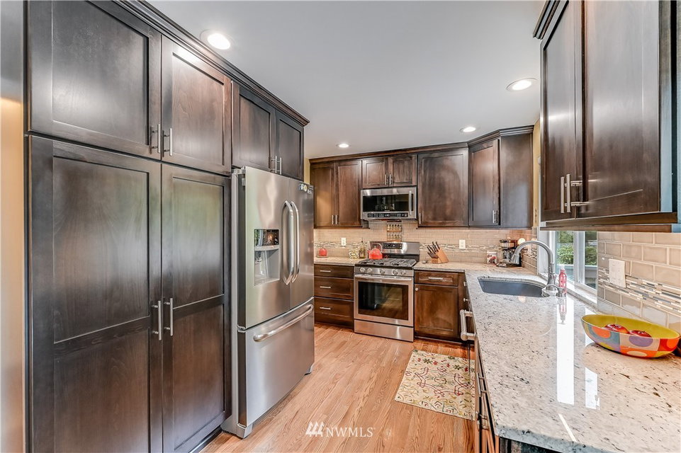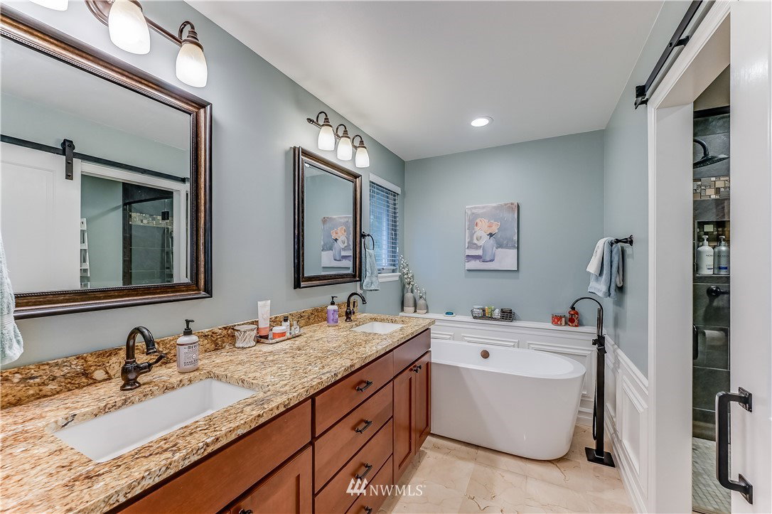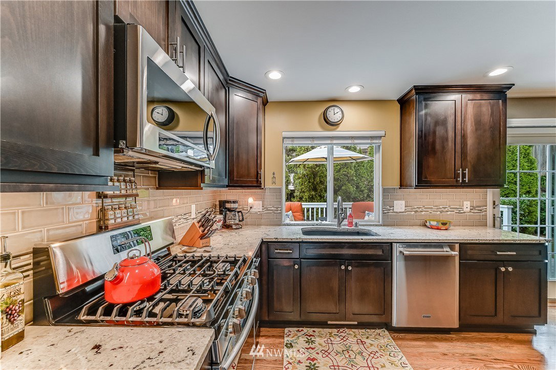 Stunning Buchan home, extensively updated with contemporary finishes & quality materials. Enter thru the beautiful front door to the refinished hardwoods & newer carpet thru-out. The added wainscoting elevates the gracious feeling of the living & dining rooms. Kitchen w/espresso cabinetry, slab granite tops, tile backsplash & stainless apps opens to the family room w/updated gas fireplace. Primary spa-like bath w/marble floors, free standing tub, tile shower & barn door. Wired for Cat 5-great for streaming! Anderson slider to the expansive cedar deck, lawn area, garden beds w/retaining walls, a shed for storage and mature trees for privacy. 2018-New roof w/transferable warranty, gutters & ext. paint. Close to Judd Park! Pre-inspected!