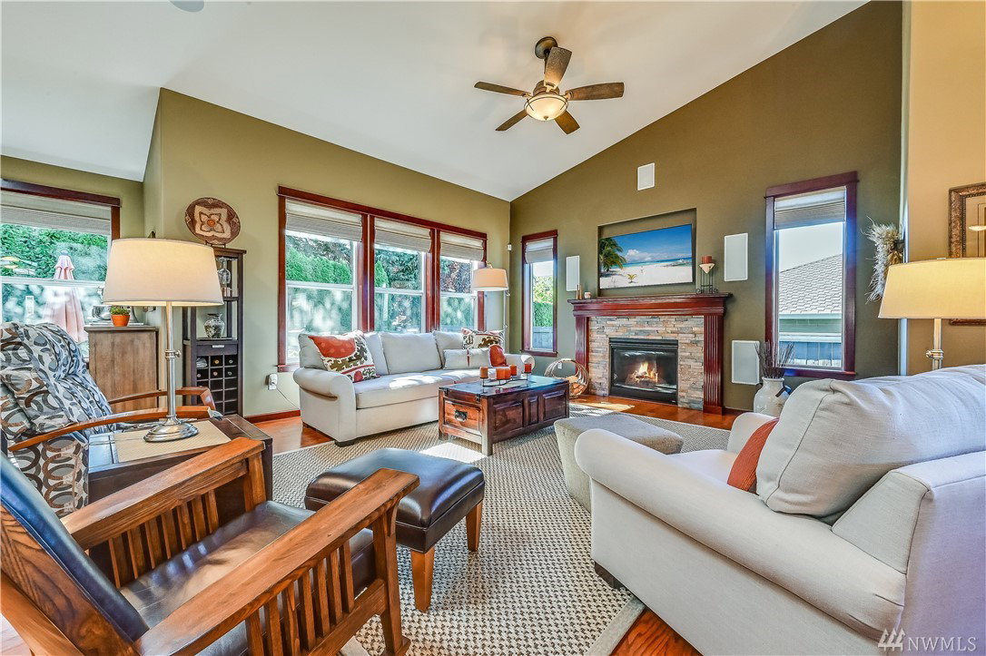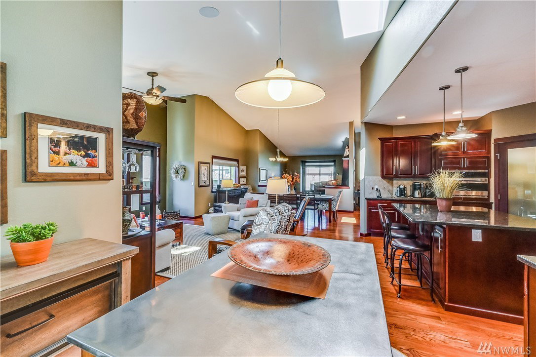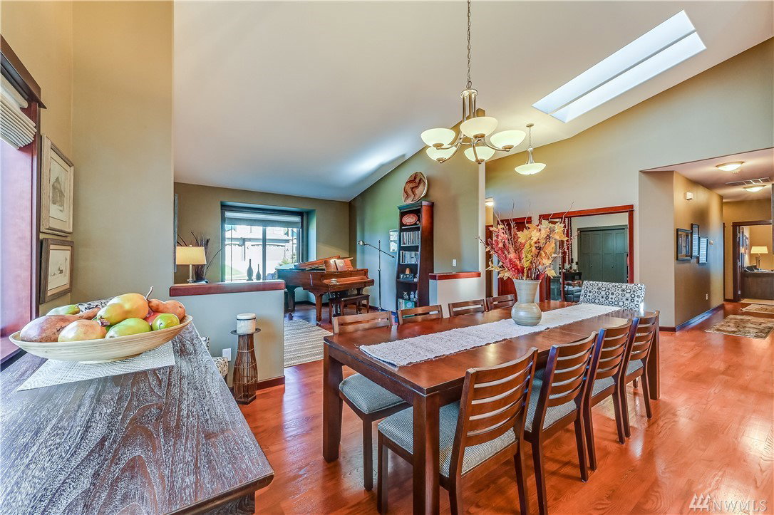 RARE- Better than new, easy living 2,524 S/F rambler built in 2012 by Reykdal Homes. “Heart of the Home” great room design w/vaulted ceilings & skylights, bathe this home in natural light. Solid hardwood floors connect the main living areas. Well-appointed gourmet kitchen. Owner’s suite w/NEW Spa-like bath. Updated home office. Covered patio*Tankless H2O*Custom blinds*A/C*Central vac*Speaker sys*Heated gar w/epoxy floor & cabinets*Freshly painted ext*Sprinklers* Too many bells & whistles to list