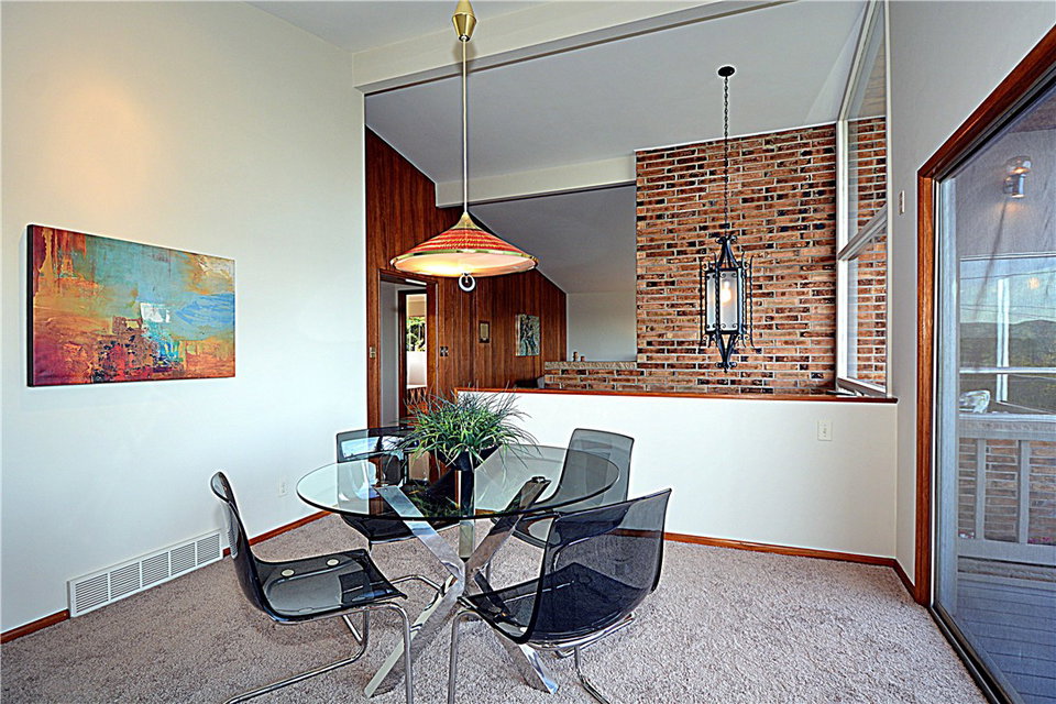 Swanky, mid-century modern w/spectacular Lake WA views! Original design elements are intact & in pristine condition. With big picture windows & expansive deck, this home flows well and is perfect for entertaining and everyday living. Bdrms w/hrdwds, king sized master w/a 3/4 bath. Fresh paint & new carpet make this move in ready. Unfinished basement w/potential for family room, 4th bdrm & is plumbed for a 3/4 bath. Beautifully landscaped & terrific outdoor areas. This one is special!