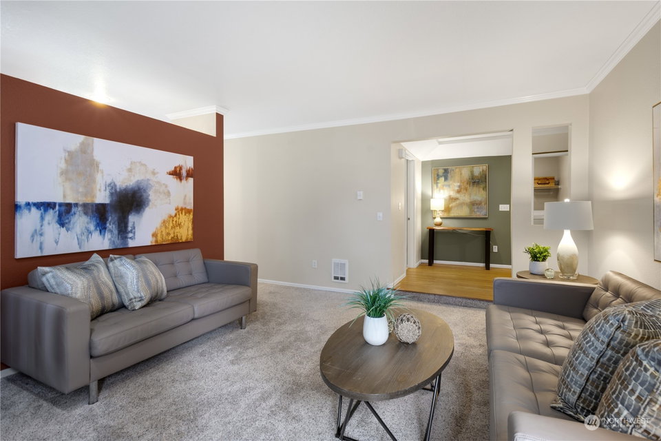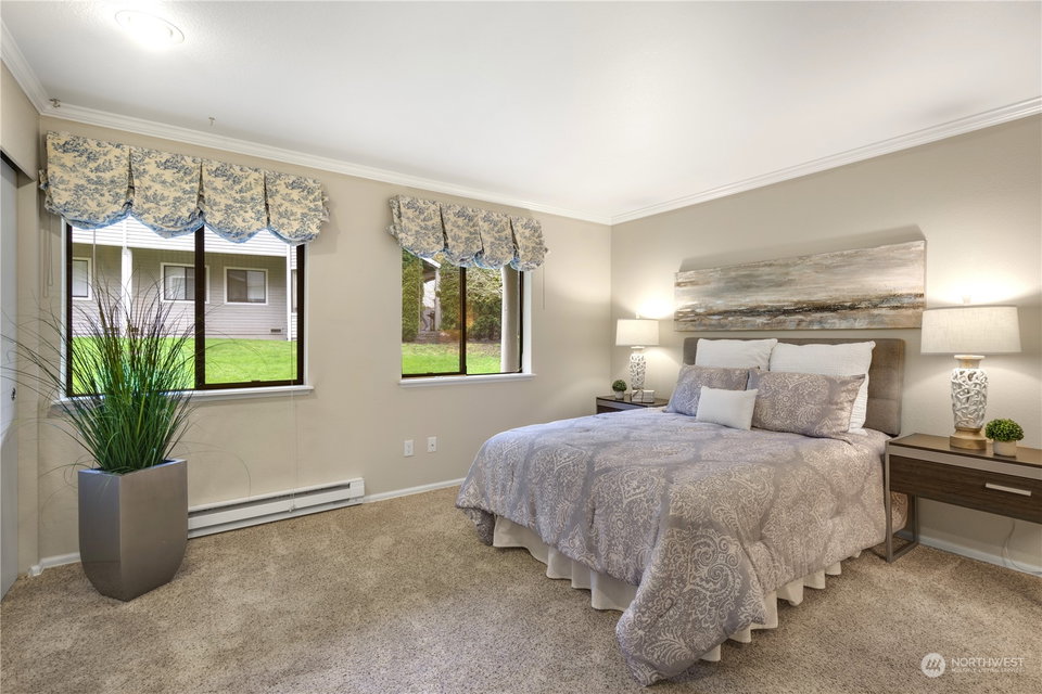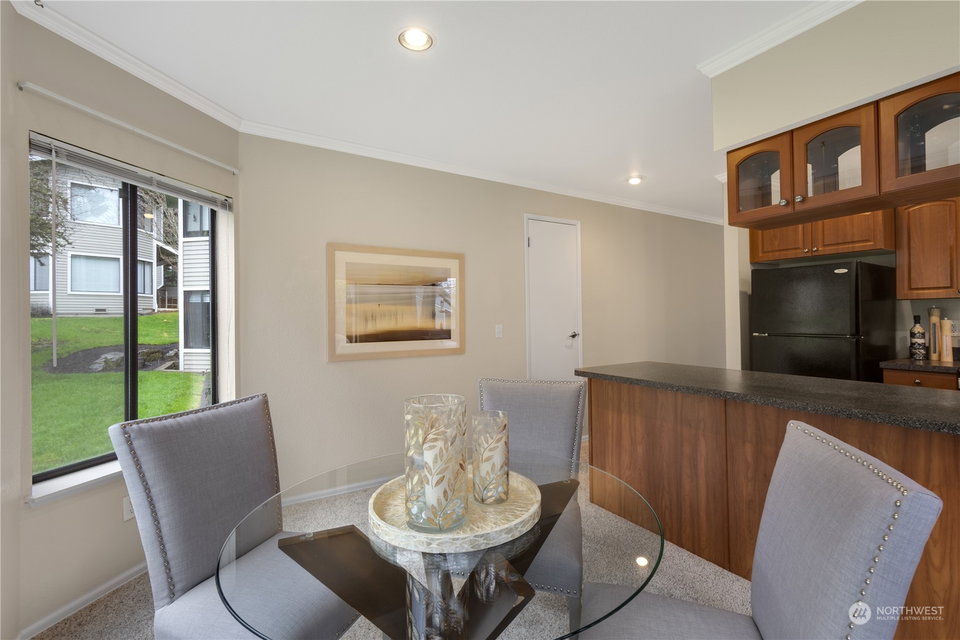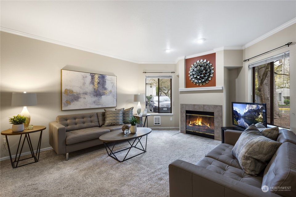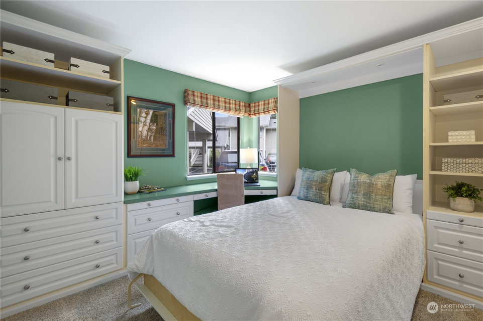 Pristine, ground floor end-unit 2BD/1.75Bth sited in the Pointe East condominium complex close to DT Redmond and Microsoft. The hardwood entry leads to the spacious, light filled living room with wood burning fireplace. The kitchen offers plenty of cabinetry, an eating bar, pantry and opens to the sunny patio. Large primary suite with lots of closet space and 3/4 bath. 2nd bedroom includes a quality Murphy bed, a built-in work station and is adjacent to a full bath. Laundry room w/full sized W/D. The carport is just steps from the unit (No Stairs). Community amenities include a clubhouse, gym, pool and lots of guest parking. A+ location close to shopping, schools, restaurants, transit center & light rail. Lake WA schools. No rental cap.