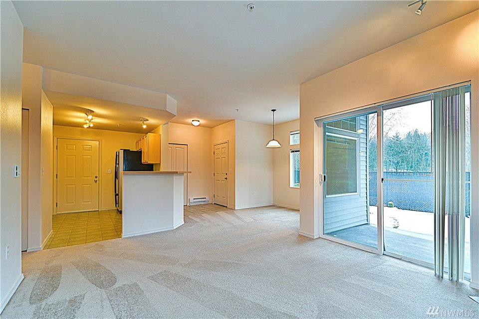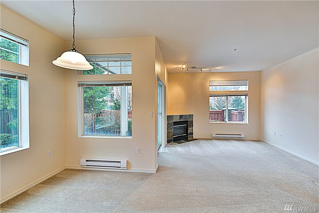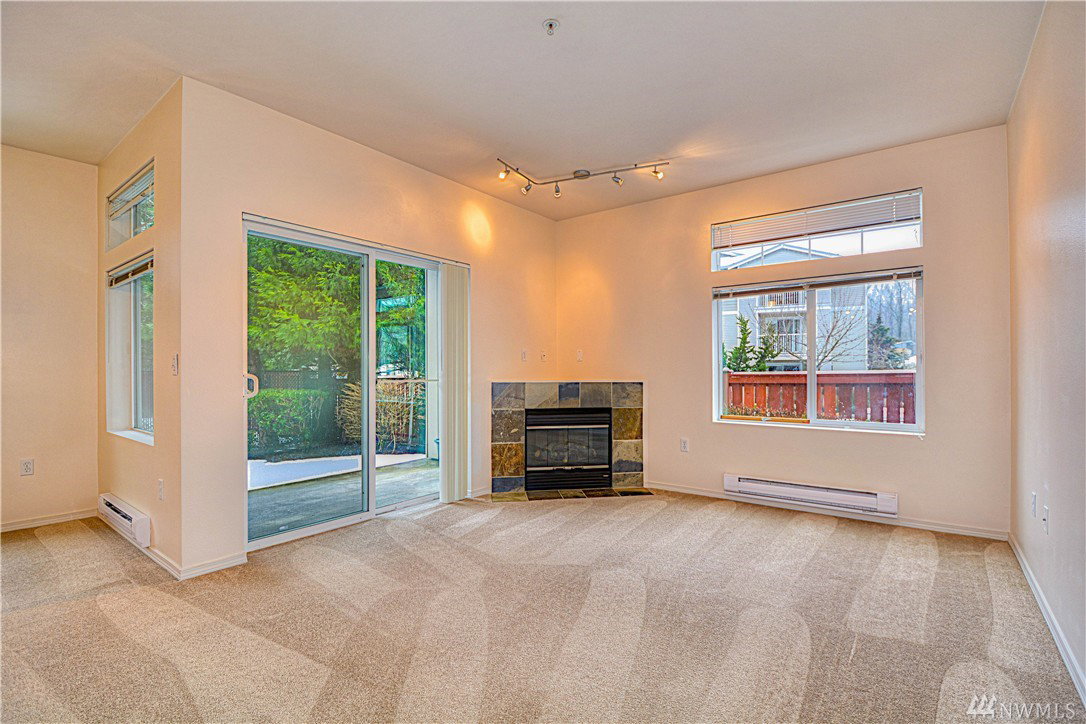 The great room floor plan on this end unit condo has spacious rooms and lives large! Freshly painted, this unit is move in ready. The kitchen has lots of cabinets & counters and is open to the living areas. An electric fireplace with slate surround anchors the living room and the windows look out to the private patio and green spaces. The master has a private bath with a soaking tub & walk-in closet. Private oversized garage w/an interior entrance to the unit. This one is a gem!